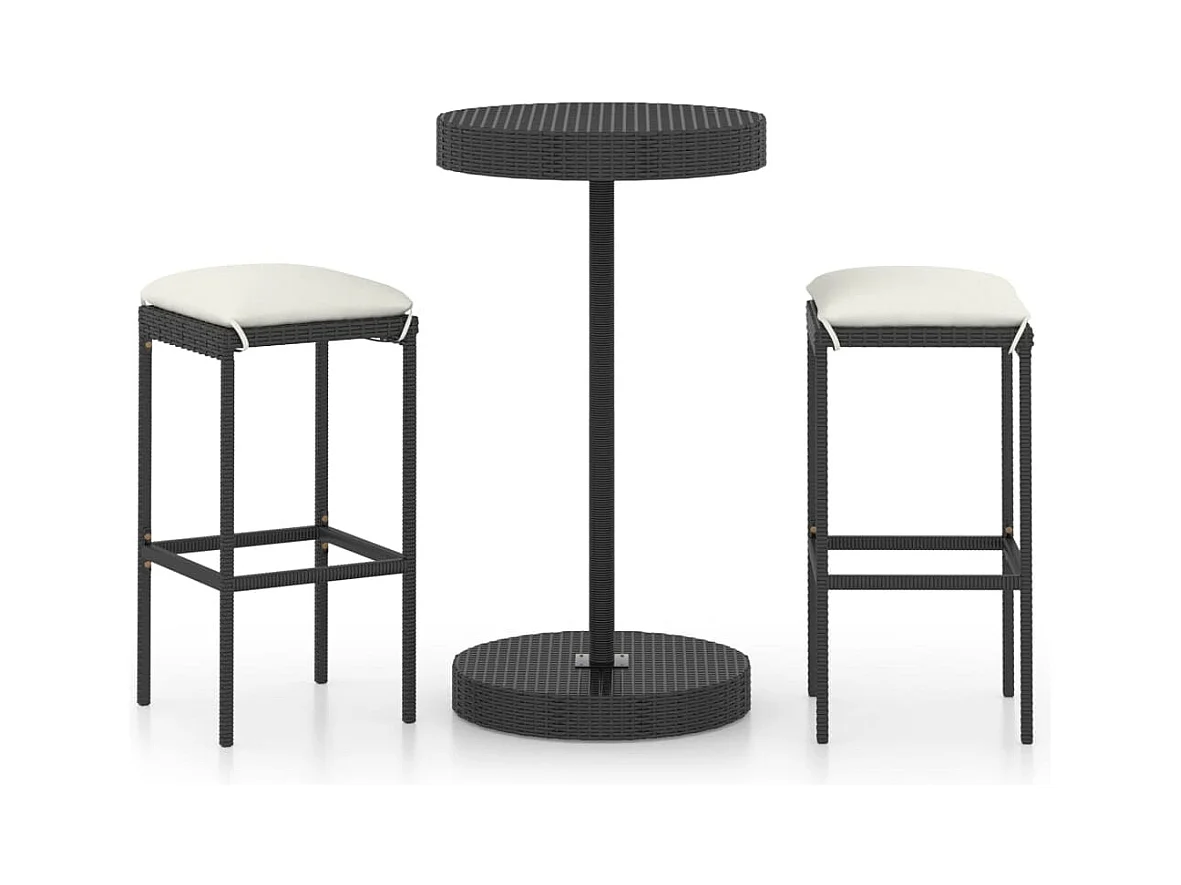 San Ferdinando di Puglia Ensemble de bar de jardin 3 pcs et coussins Résine tressée Noir