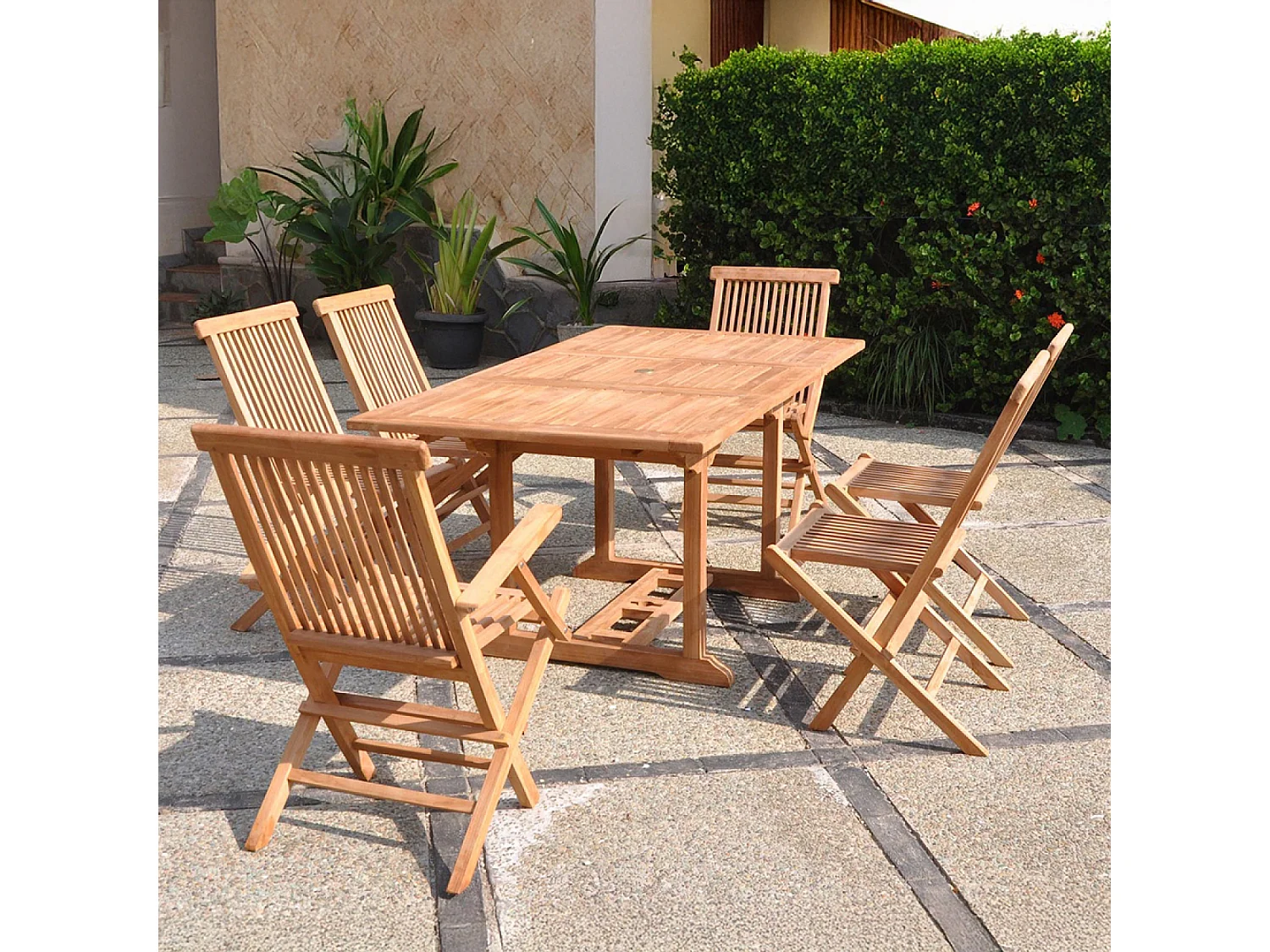 Table de jardin rectangulaire 4 chaises 2 fauteuils en teck KAJANG