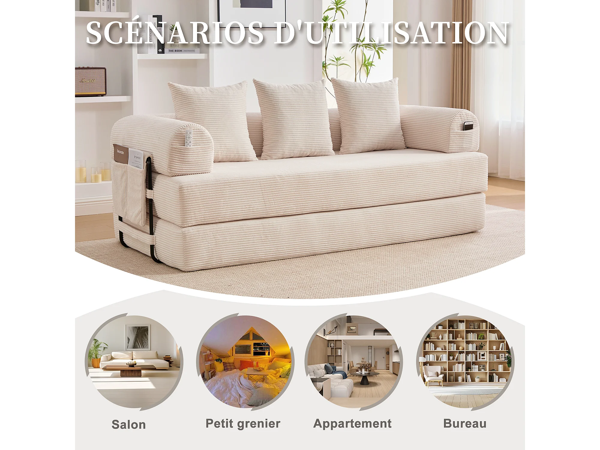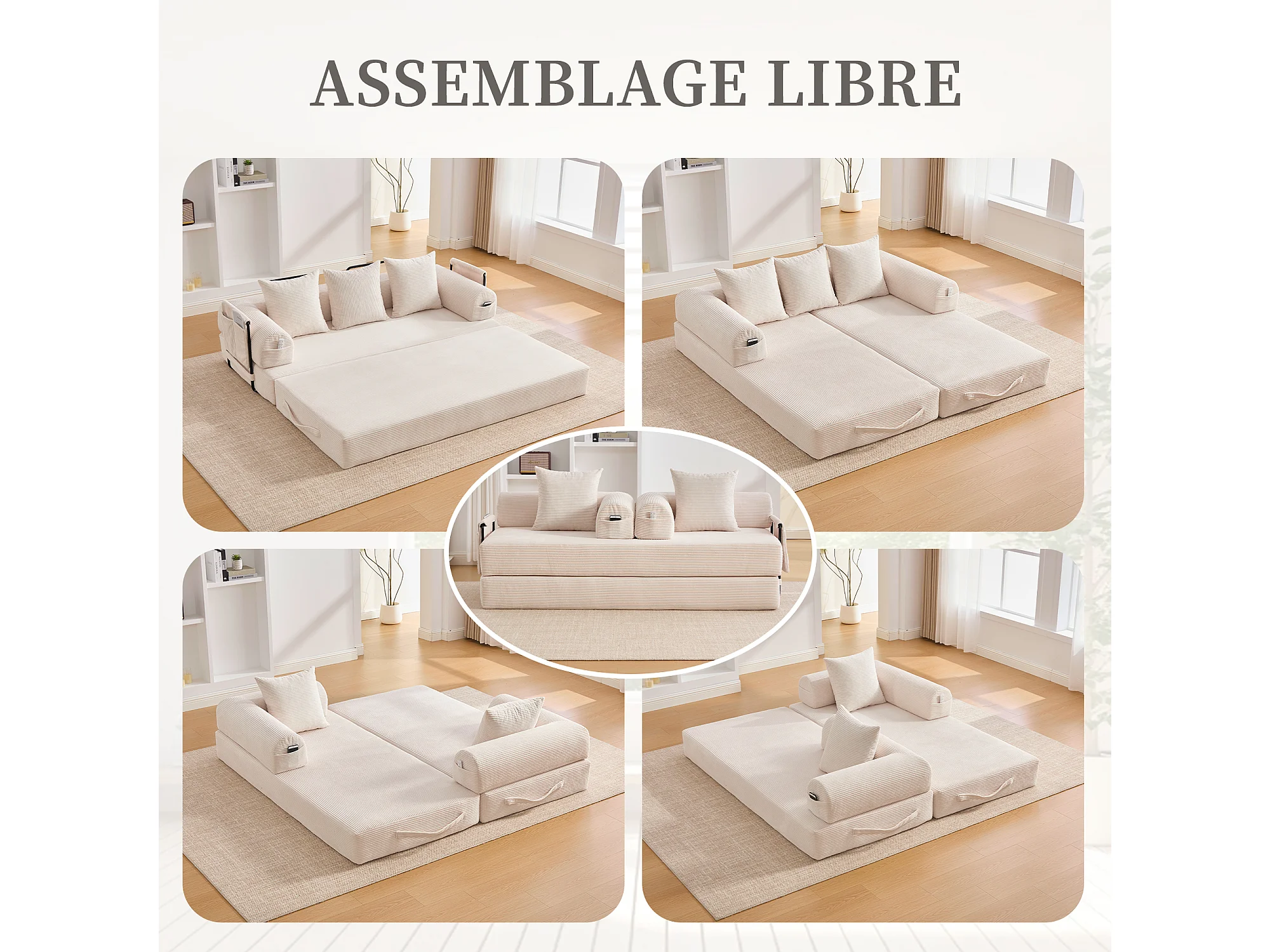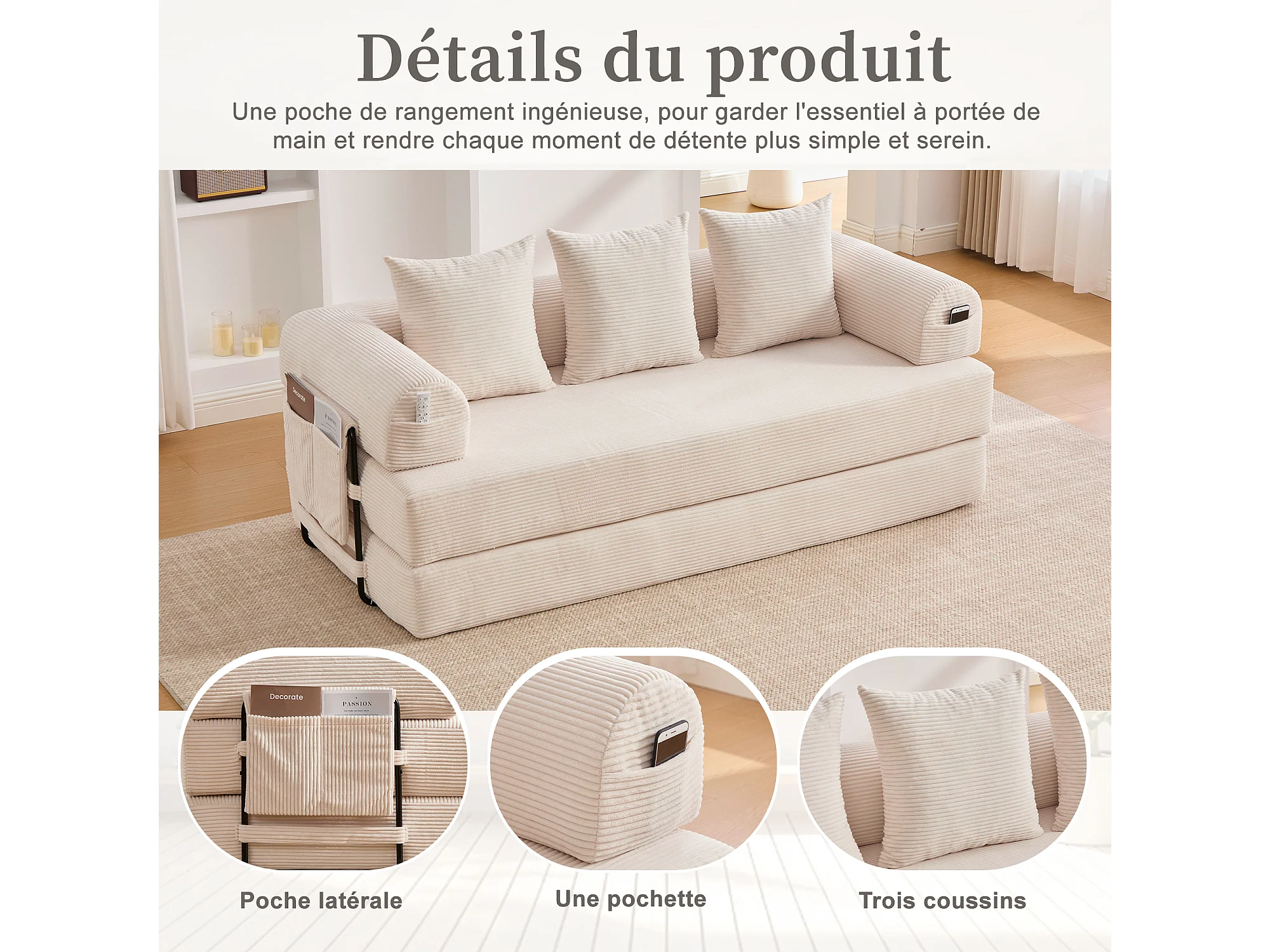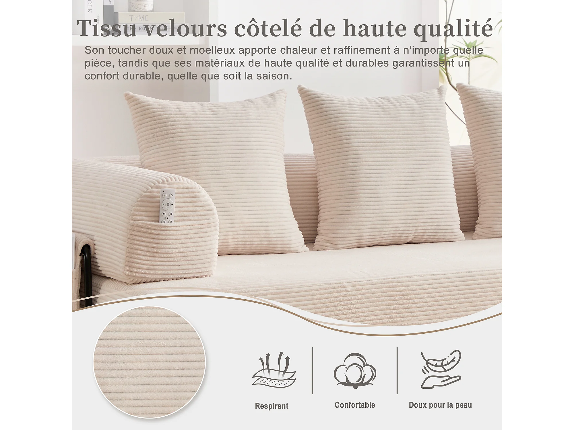 Kaleido 2.0 - Canapé Modulable en Velours Côtelé – Cadre Métallique Externe - Poches de Rangement et 3 Coussins Inclus - Beige – Idéal pour Salon, Appartement