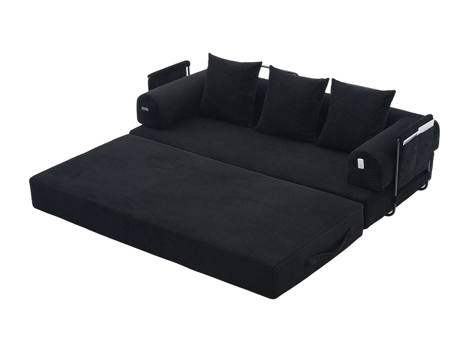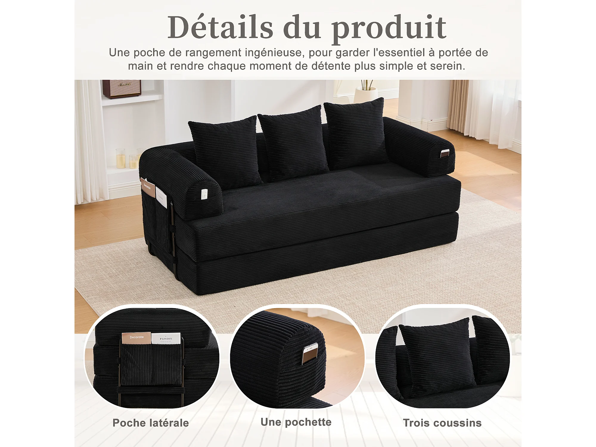 Kaleido 2.0 - Canapé Modulable en Velours Côtelé – Cadre Métallique Externe - Poches de Rangement et 3 Coussins Inclus - Noir – Idéal pour Salon, Appartement