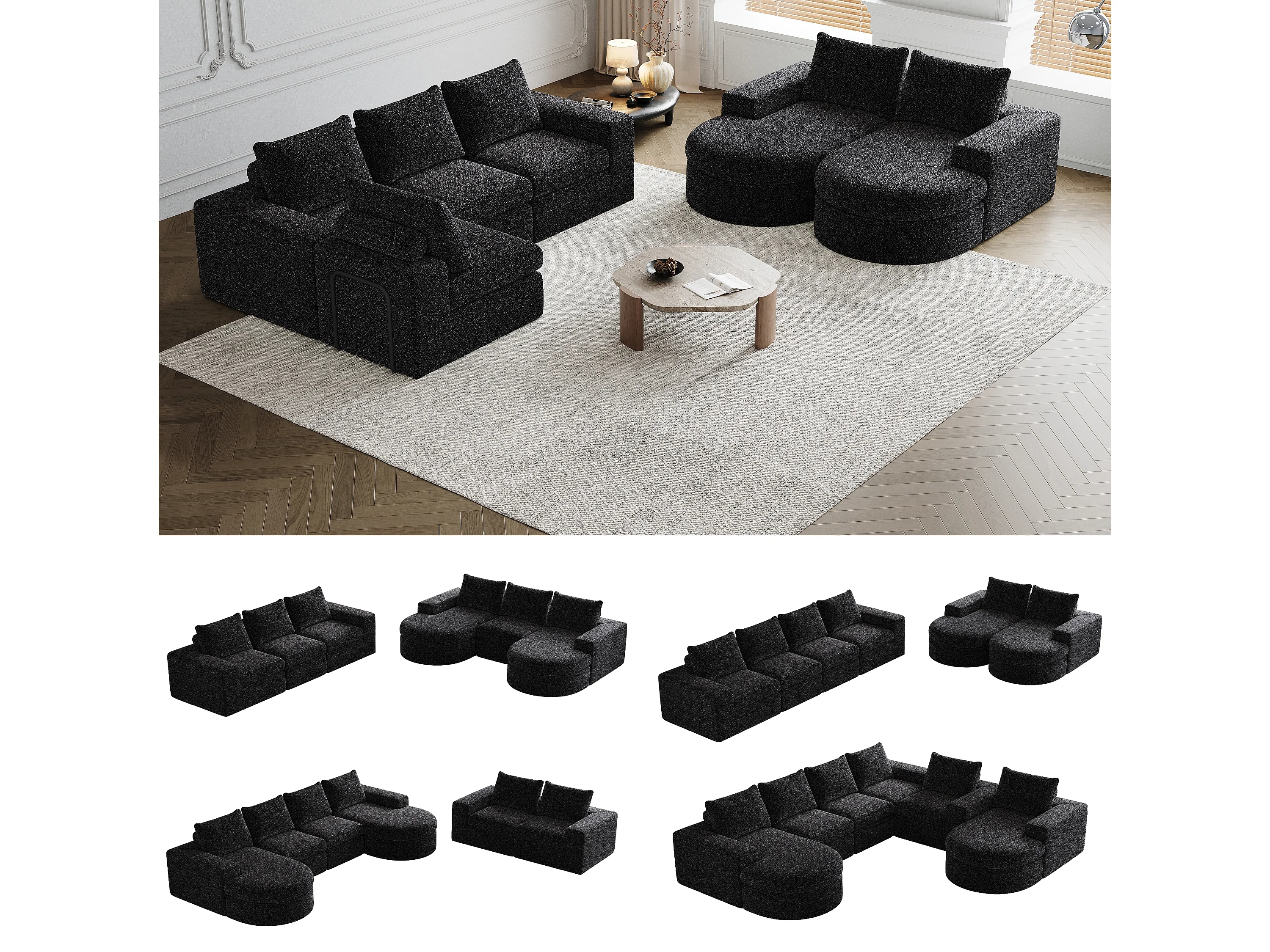 Kaleido Pro – Lot de 2 Canapés d’Angle Modulables Connectables – 6 Places – 251x160x81 cm – Méridienne Réversible – Tissu Chenille – Confort Douillet