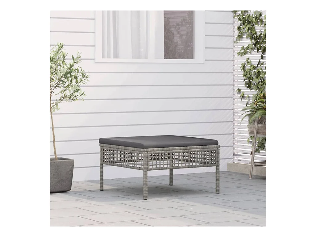 Layla Hope Repose-pied de jardin et coussin Gris 70x70x30cm Résine tressée
