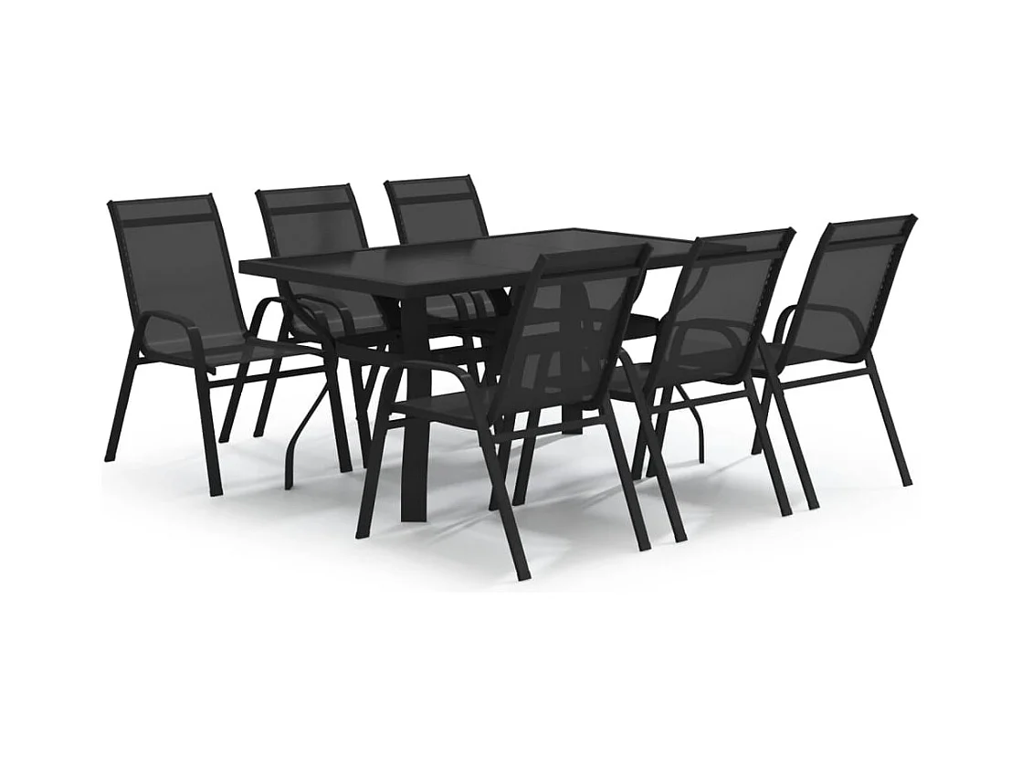 Katie Belle Ensemble à manger de jardin 7 pcs Noir