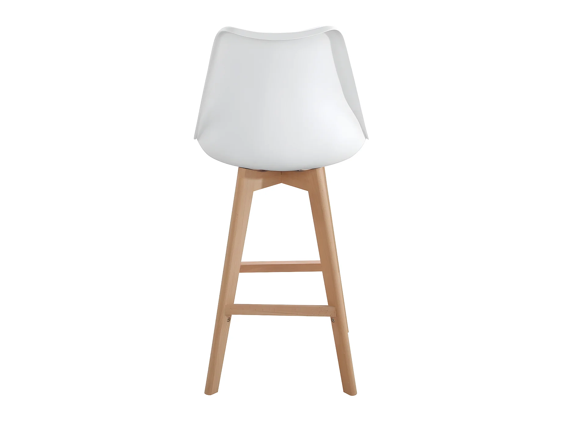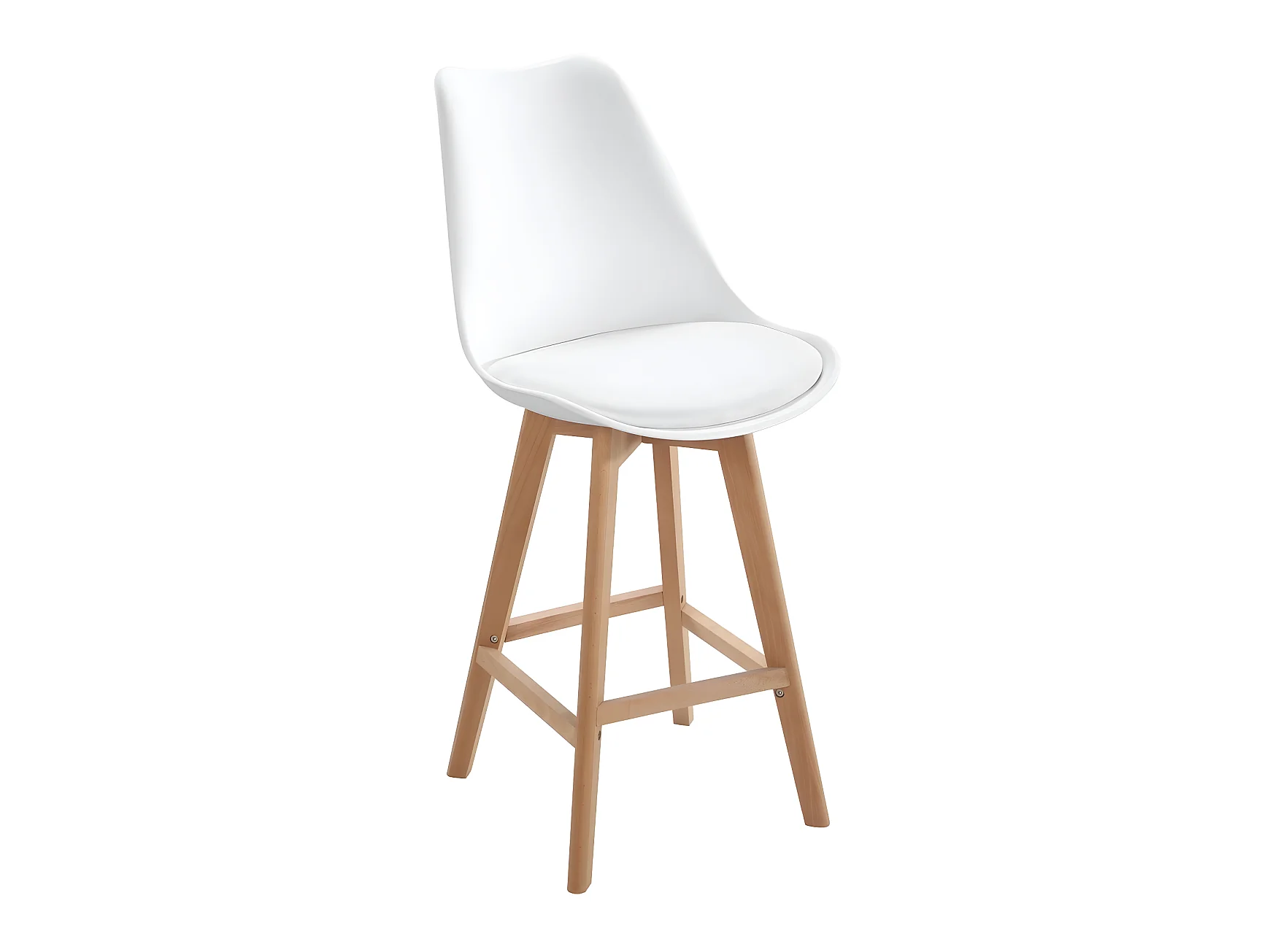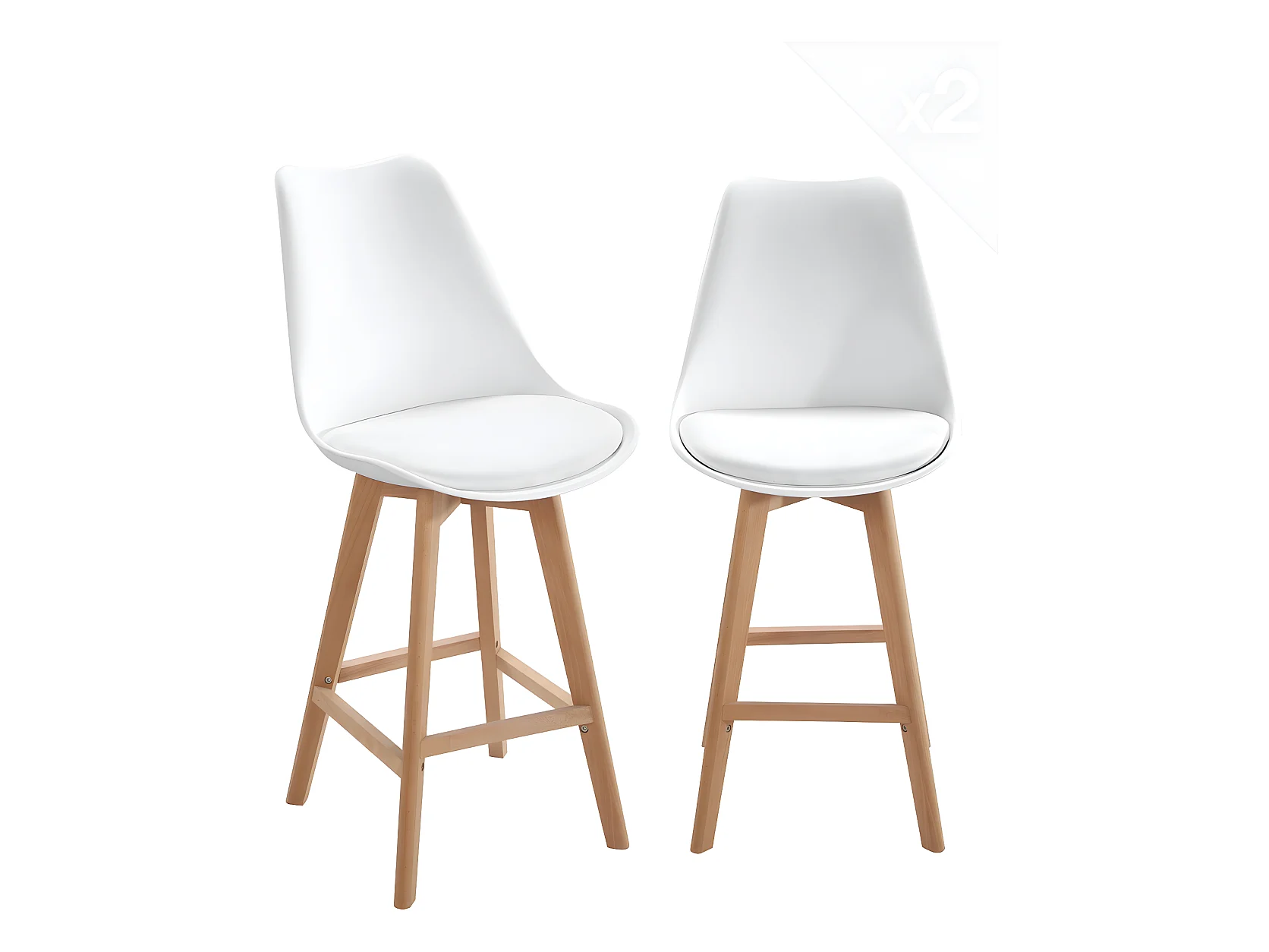 Lot 2 chaises de bar scandinaves 70cm large siège coussin simili cuir pieds bois TIKA (blanc)