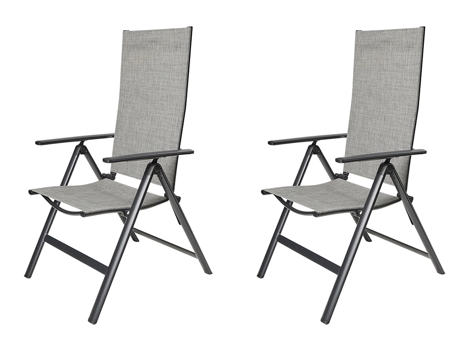 Keddy 2 x chaise de jardin, dossier réglable, 7 positions, mix noir/gris clair.