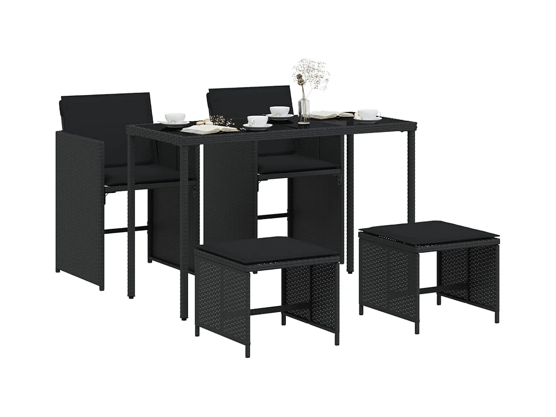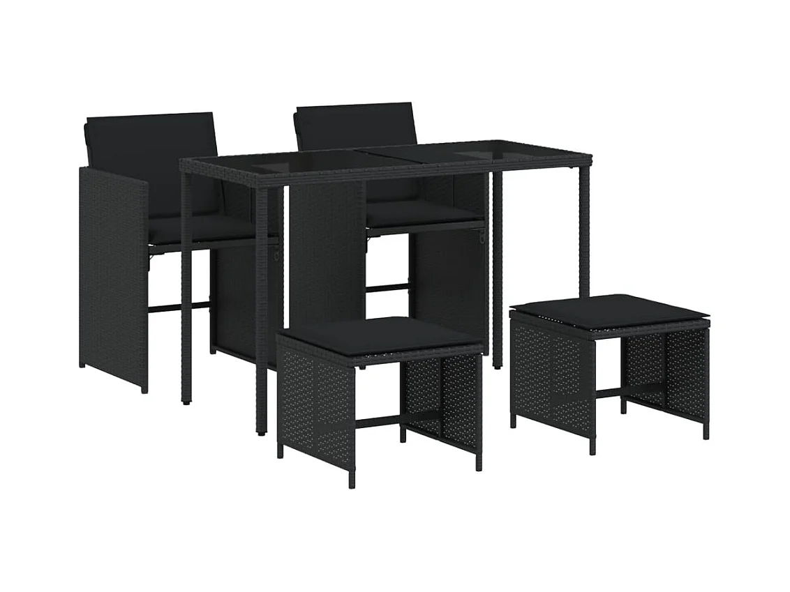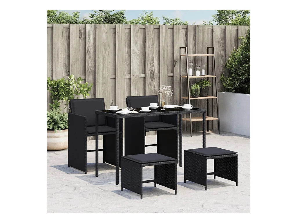 Kelior Ensemble à manger de jardin coussins 5pcs Noir Résine tressée