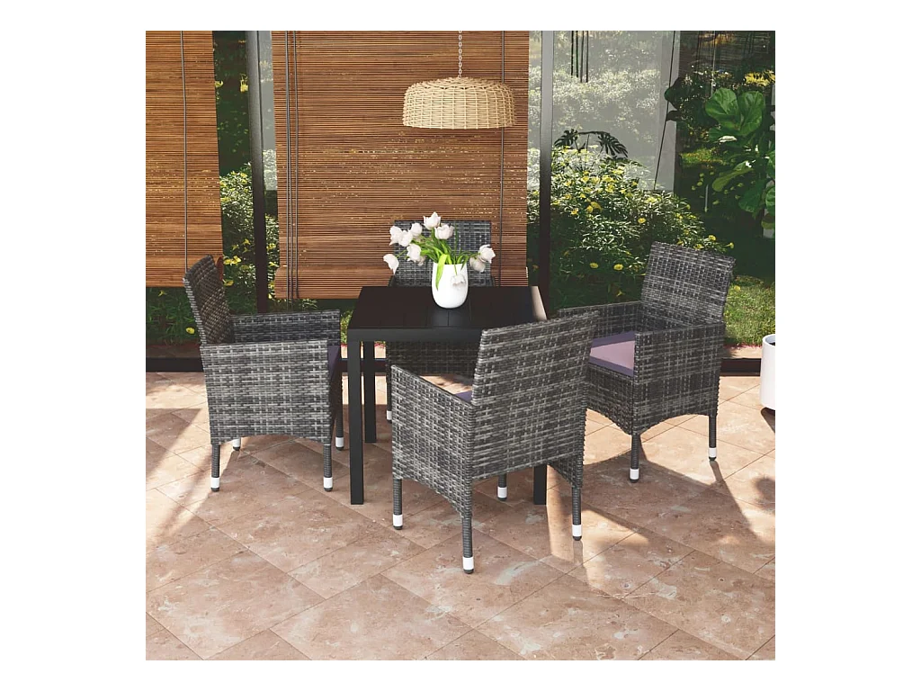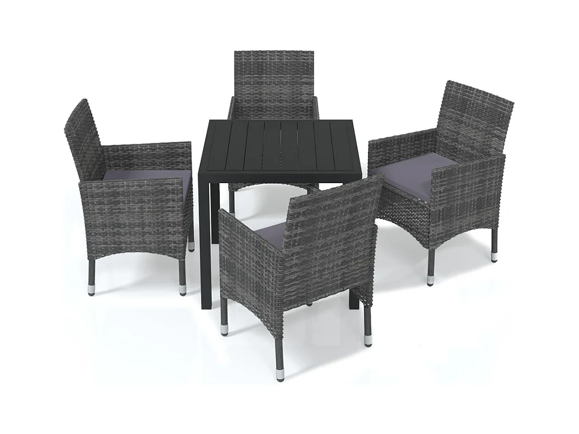 Kelly Ensemble à manger de jardin coussins 5pcs Résine tressée Gris