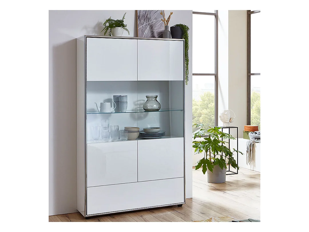 Kenan vitrine 2 portes, 1 tiroir laqué blanc brillant.