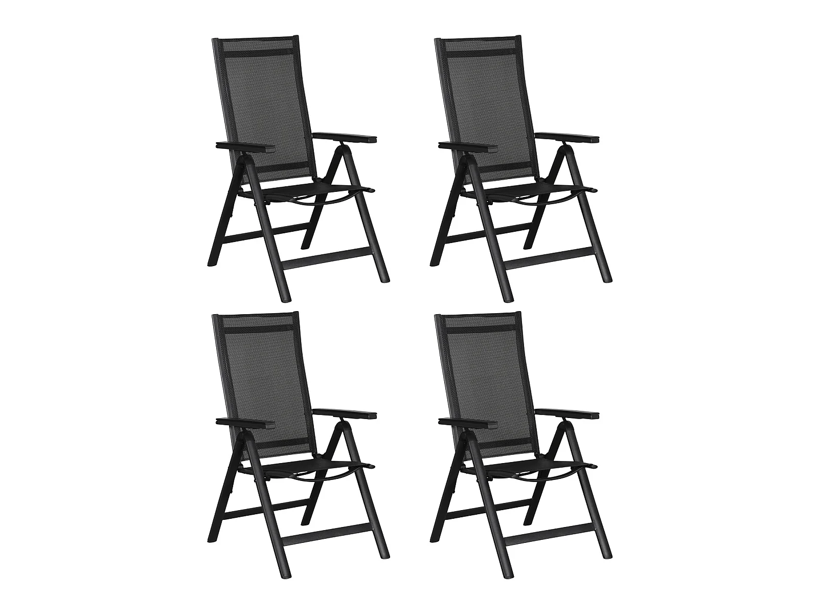 Kenny 4 x chaise de jardin, dossier réglable, 6 positions, noir/noir.