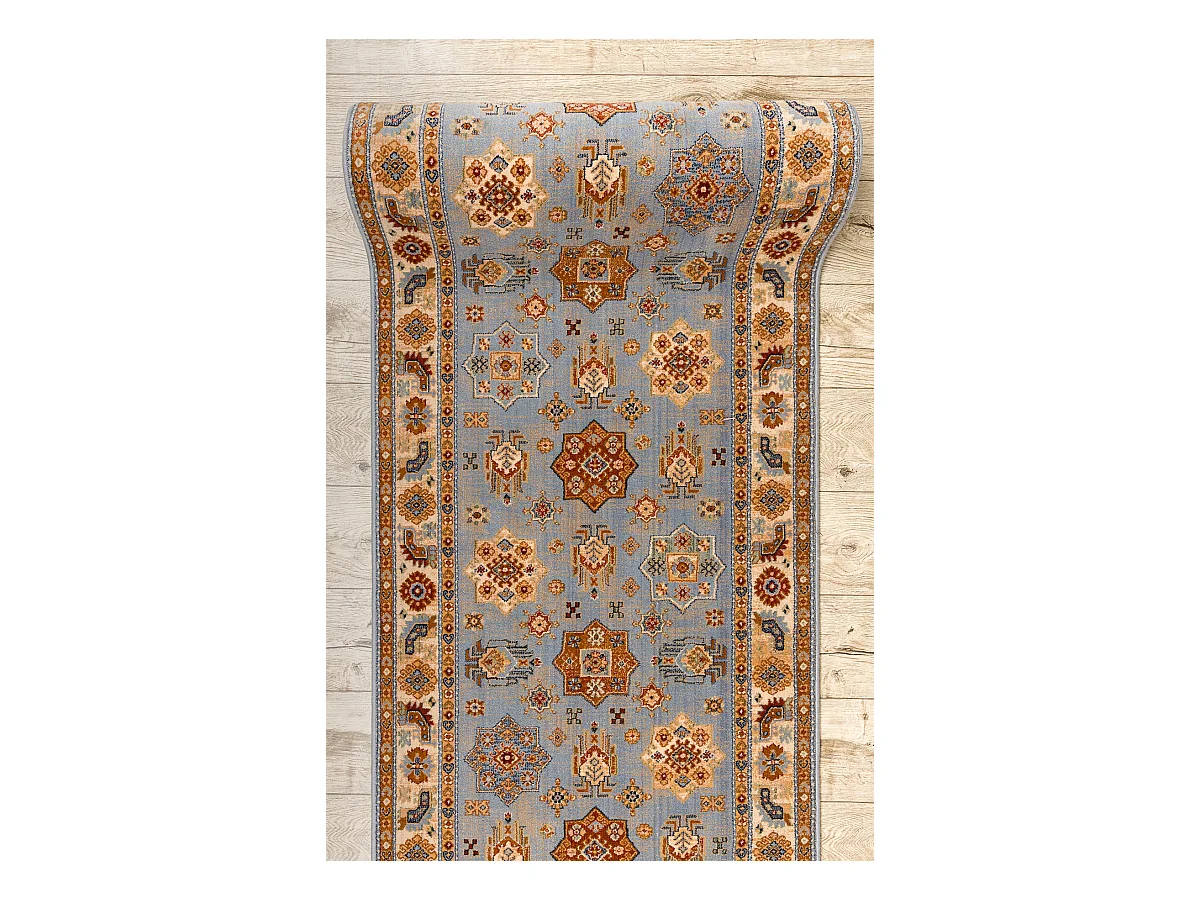 KESHAN tapis de couloir 7683/53544 Cadre, oriental bleu / beige 90x200 cm