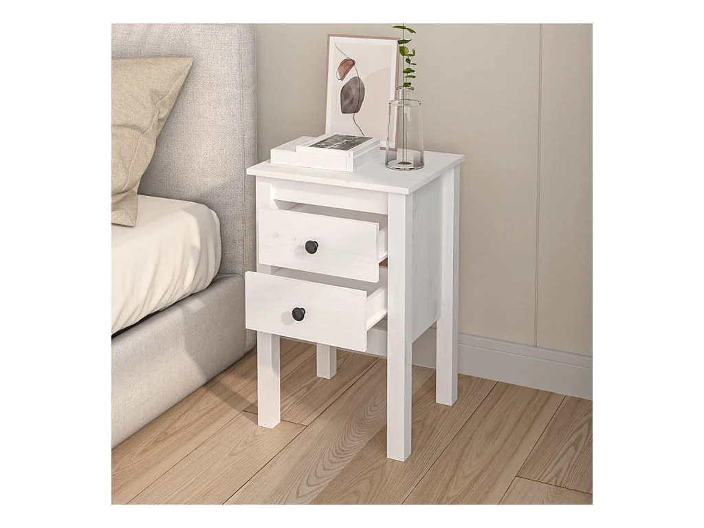 Calvino Tables de chevet HAMAR 2 pcs Blanc 40x35x62 cm Bois massif