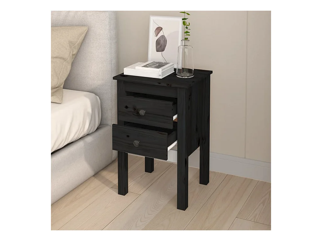 Cynor Tables de chevet 2 pcs Noir 40x35x61,5 cm Bois de pin massif