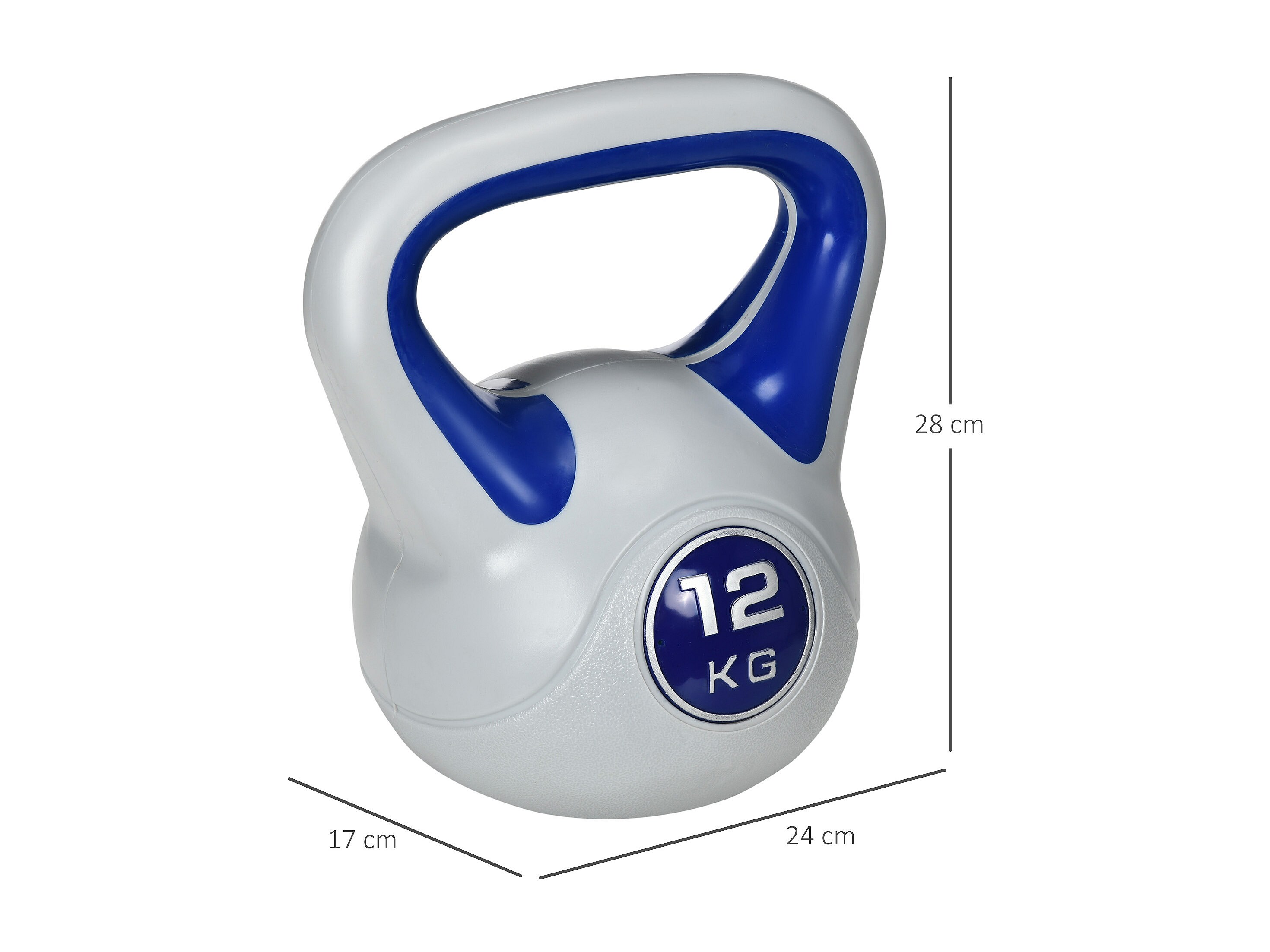 Kettlebell 12 KG, poids de sol pour entraînement, plastique, bleu (24x17x28 cm)