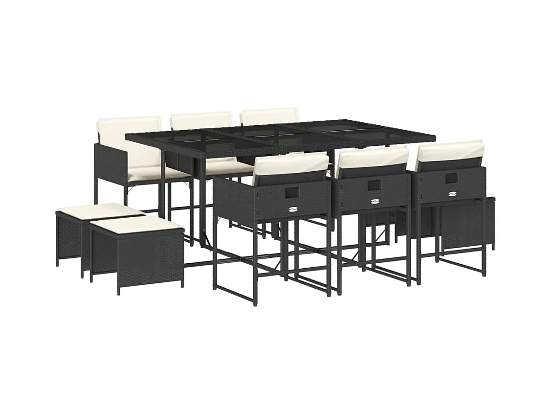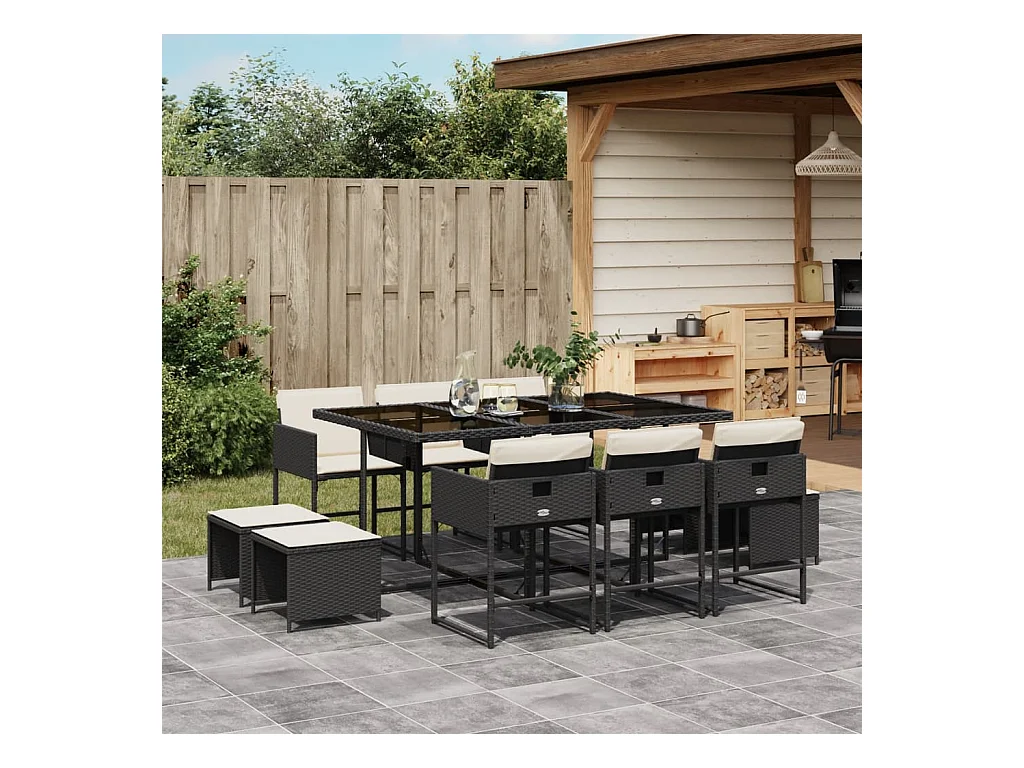 Xeli Ensemble à manger de jardin 11 pcs coussins noir résine tressée