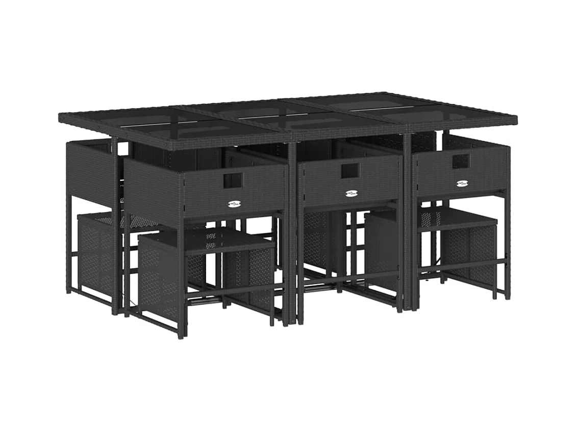 Zele Ensemble à manger de jardin coussins 7pcs Noir Résine tressée