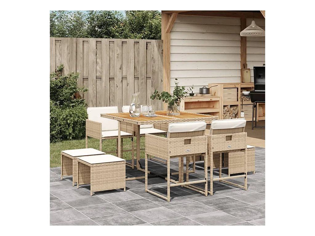 Zenn Ensemble à manger de jardin et coussins 9 pcs beige Poly rotin
