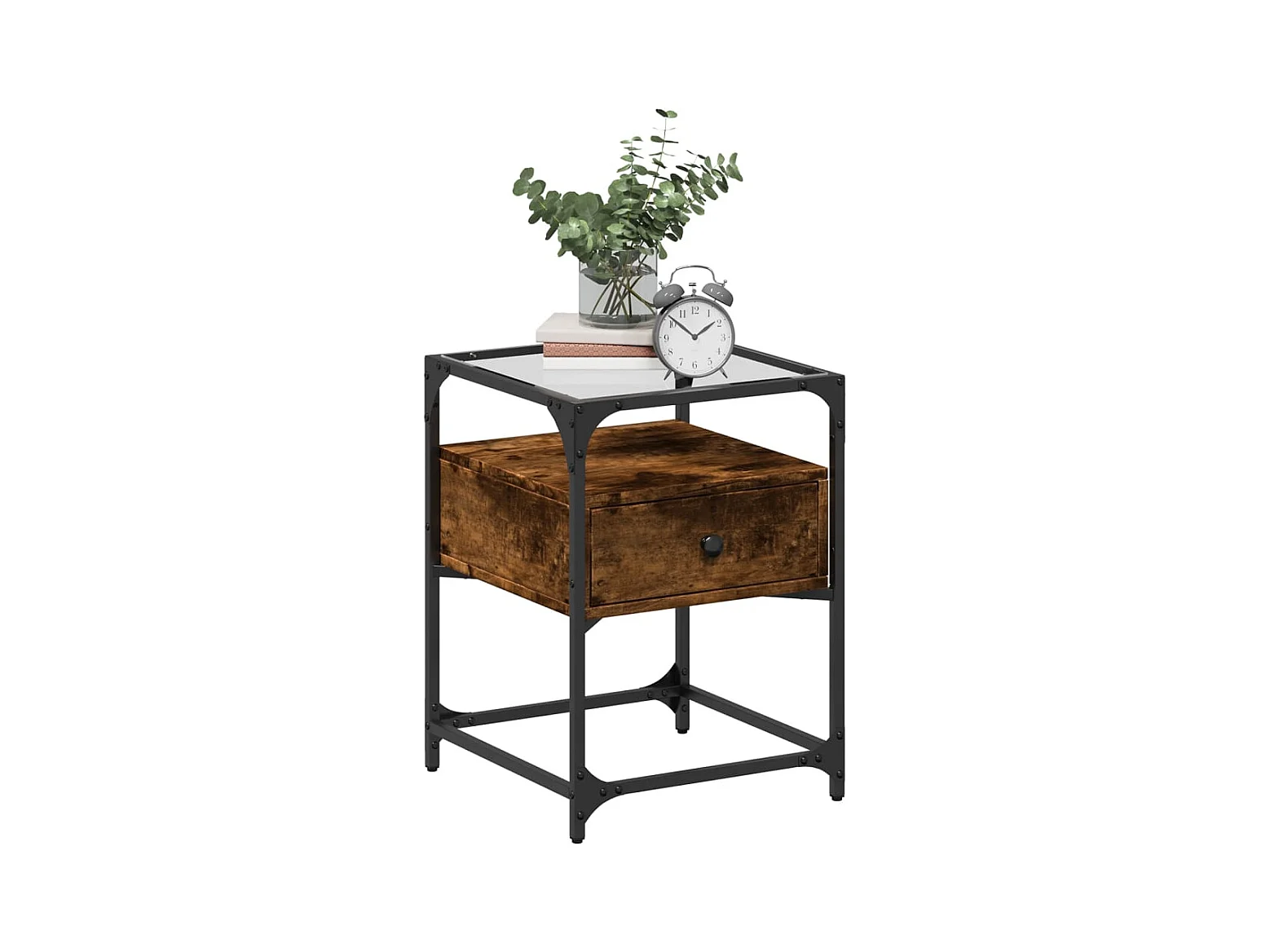 Nihat Table de chevet avec porte en verre chêne fumé 35x37x35 cm
