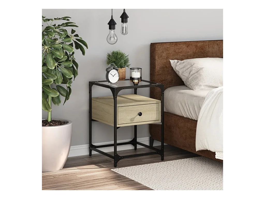 Nihat Table de chevet avec porte en verre chêne sonoma 35x37x35 cm