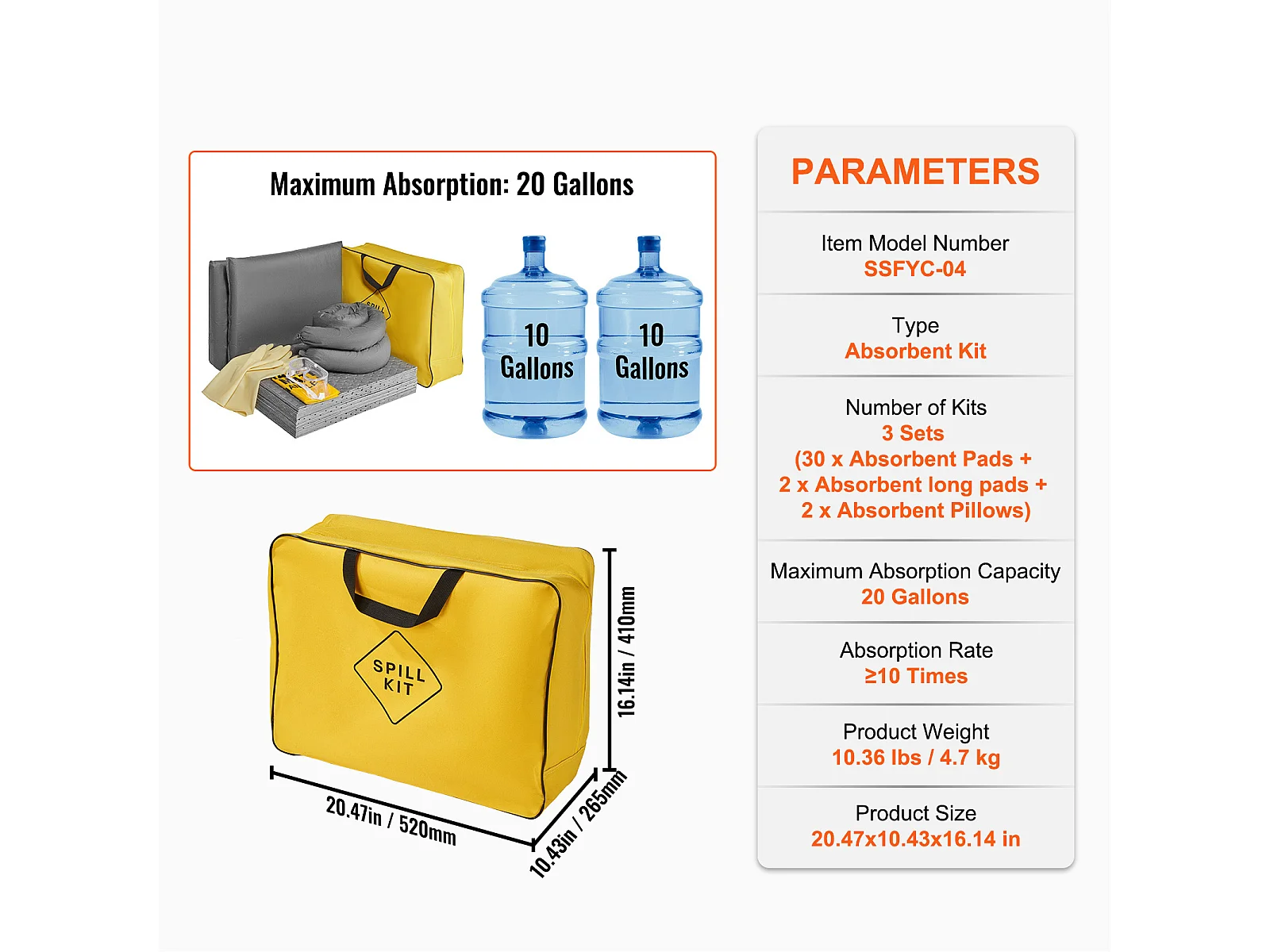 Kit Anti-Déversement Universel SucceBuy, Tampons Absorbants, Chaussettes, Oreillers, Fournitures de Contrôle des Déversements