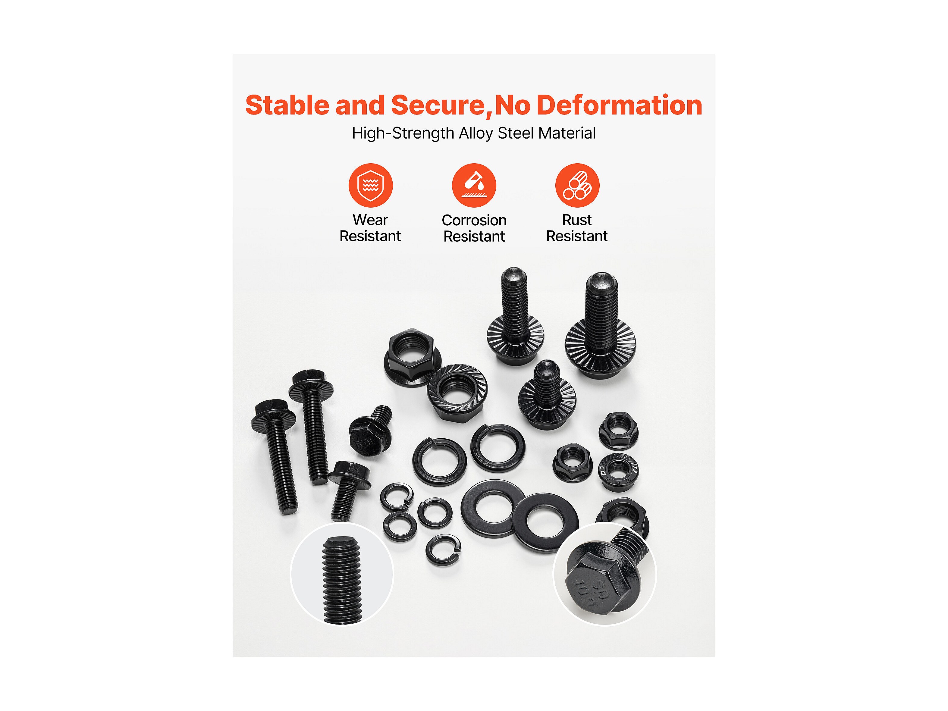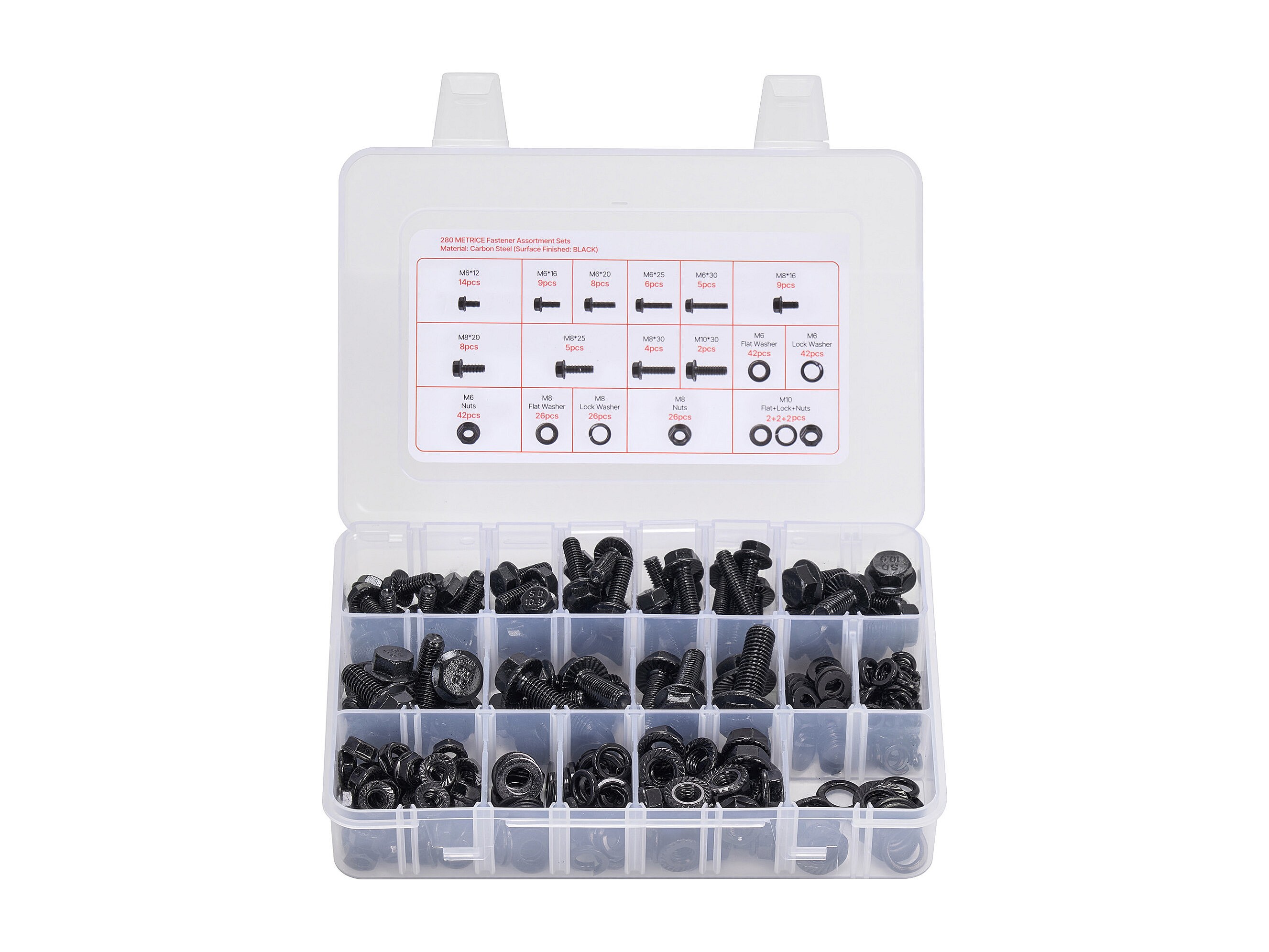 Kit Boulons et Écrous SucceBuy, 280 PCS, Vis de Machine et Rondelles Plates, Métriques Classe 10.9, Acier Allié, Plusieurs Tailles M6/M8/M10