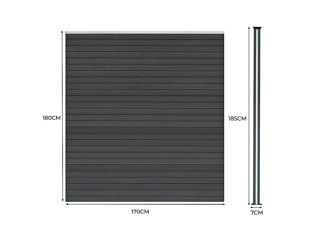 Kit Clôture Composite 1 Panneau & 2 Poteaux à LED - Gris