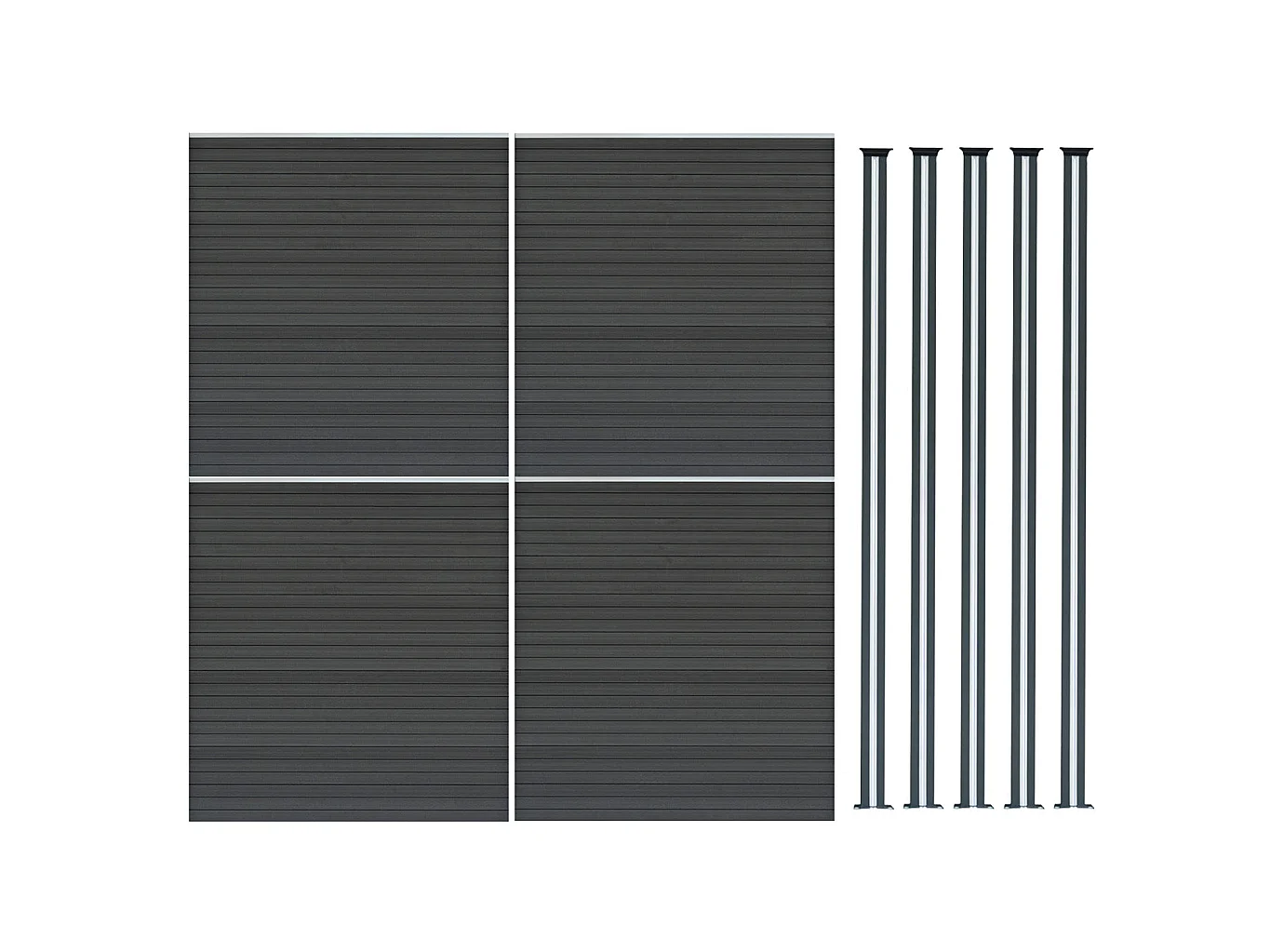 Kit Clôture Composite 4 Panneaux & 5 Poteaux à LED - Gris