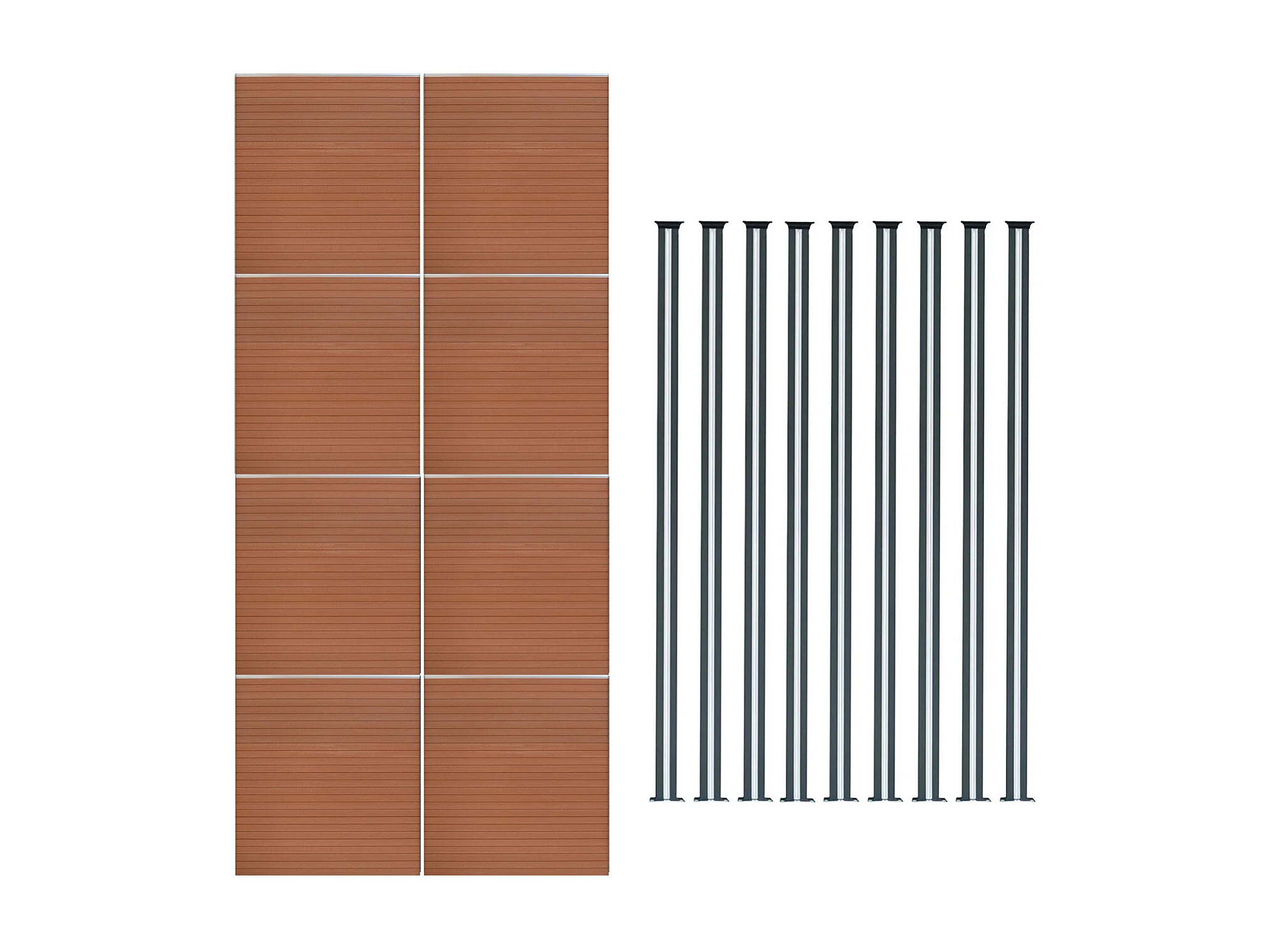 Kit Clôture Composite 8 Panneaux & 9 Poteaux à LED - Marron
