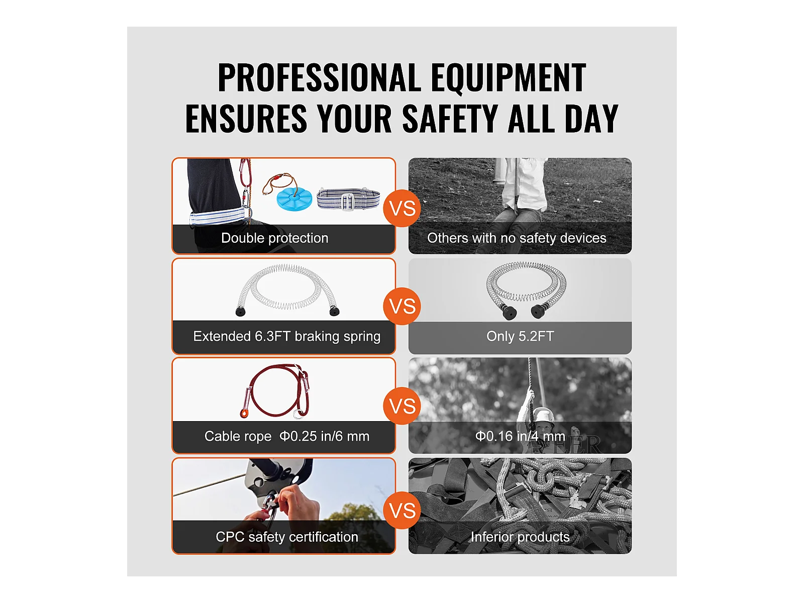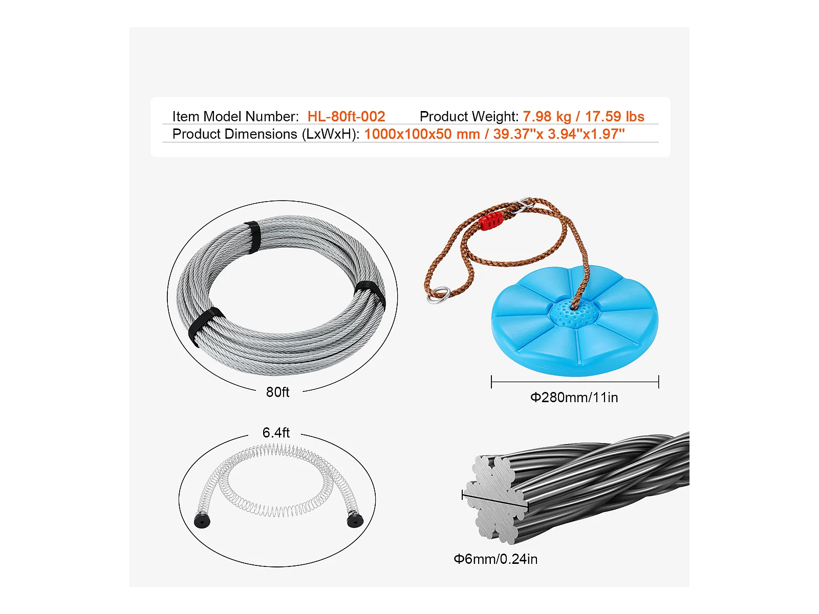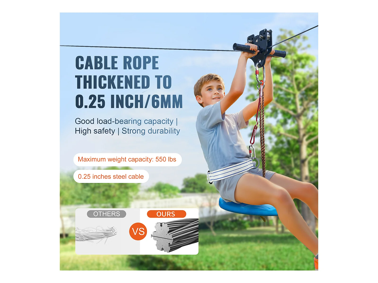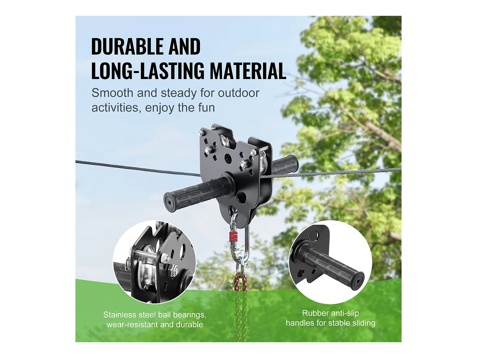 Kit Complet Tyrolienne, SucceBuy Kit de Tyrolienne de 2438.4 CM pour Enfants et Adultes, Tyrolienne à Roulettes, Jusqu'à 500 lb