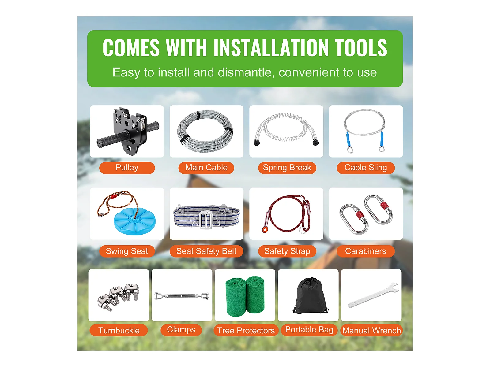 Kit Complet Tyrolienne, SucceBuy Kit de Tyrolienne de 3657.6 CM pour Enfants et Adultes Jusqu'à 500 lb
