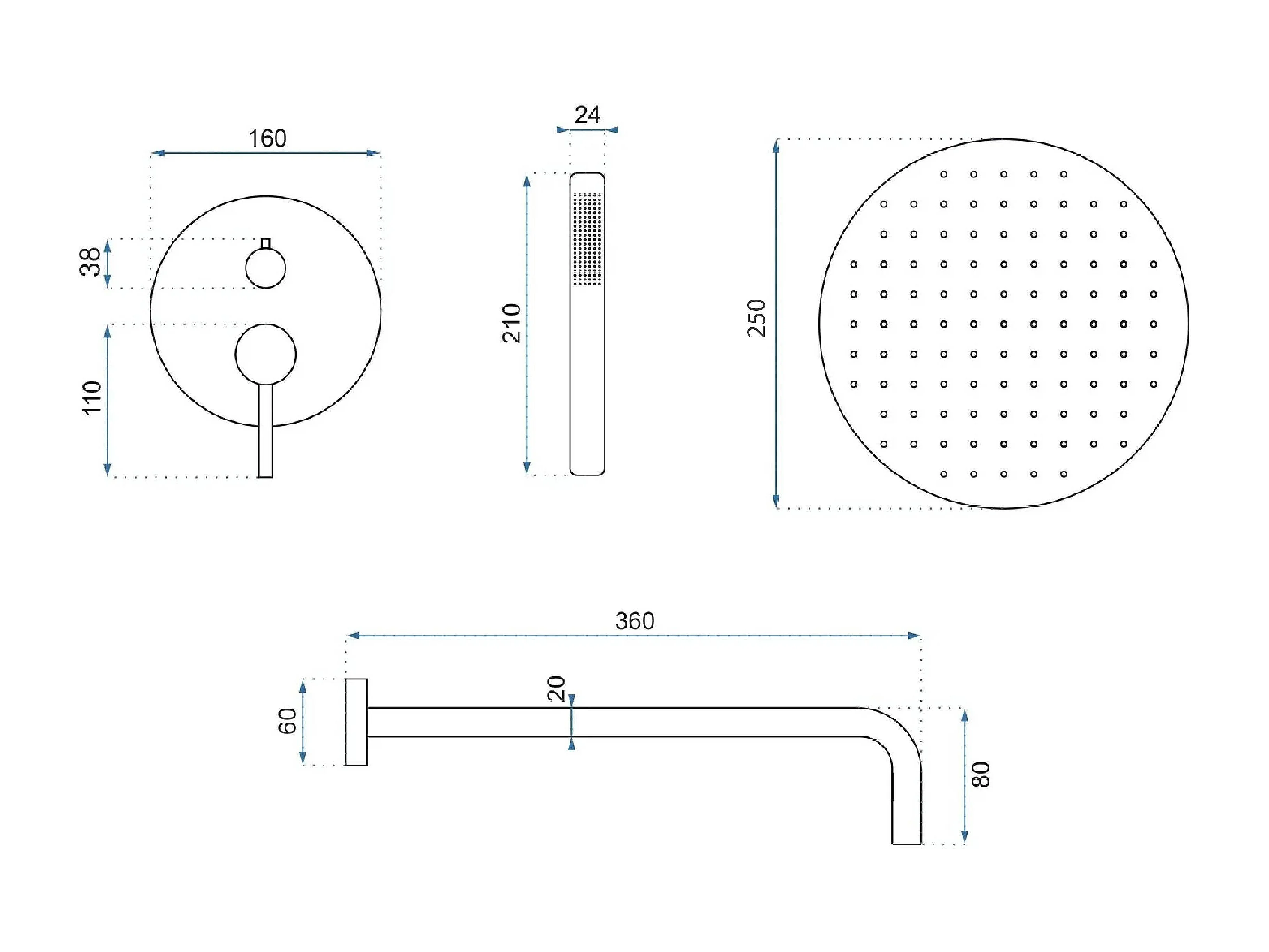 Kit De Douche Encastré Rea Lungo +Box Titanium