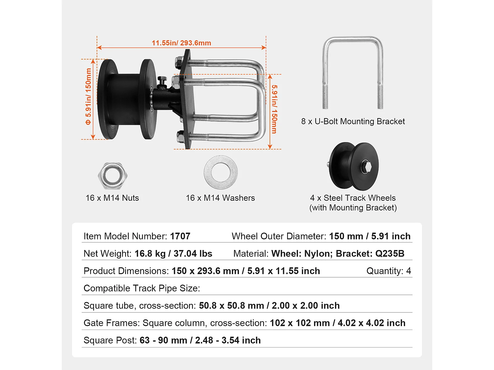 Kit de Portail Coulissant, SucceBuy Kit de Portail Coulissant, Rainure en H, 4 Roulettes pour Porte-à-Faux