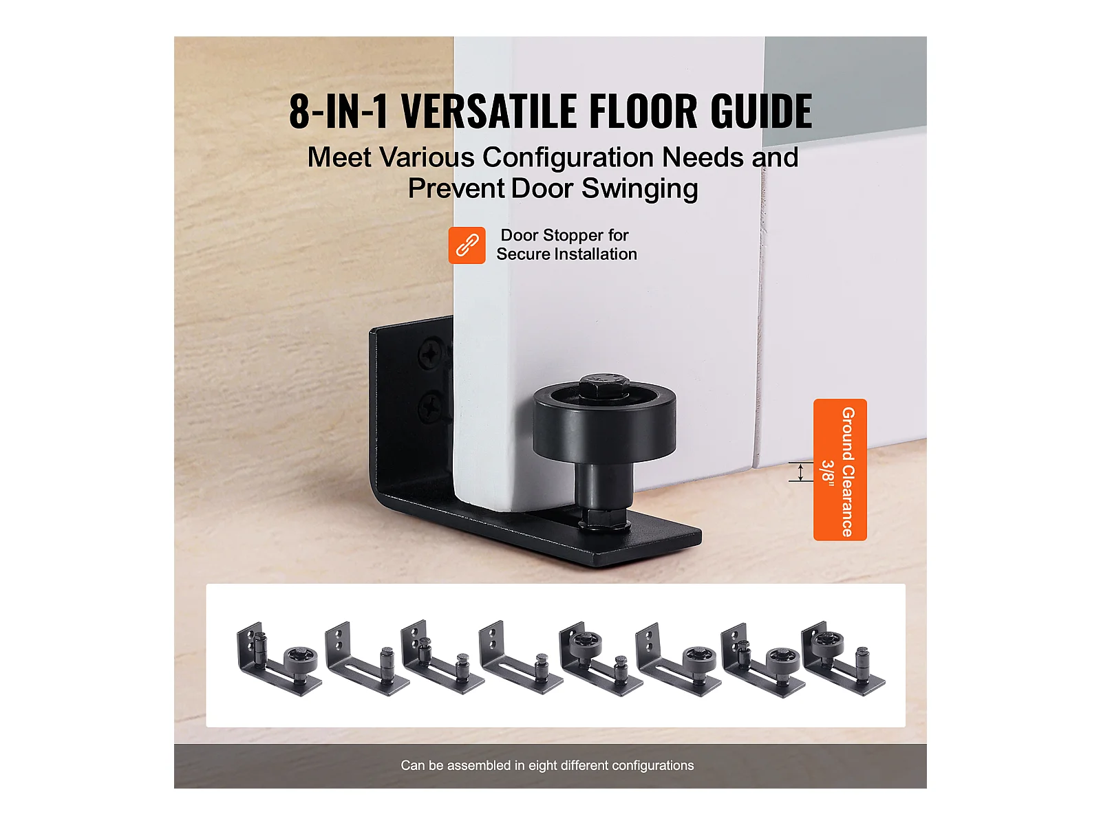 Kit de Porte de Grange Coulissante SucceBuy, 76 x 213 cm, Porte Coulissante en Bois et en Verre, Guide au sol 8 en 1, Fonctionnement Fluide et Silencieux
