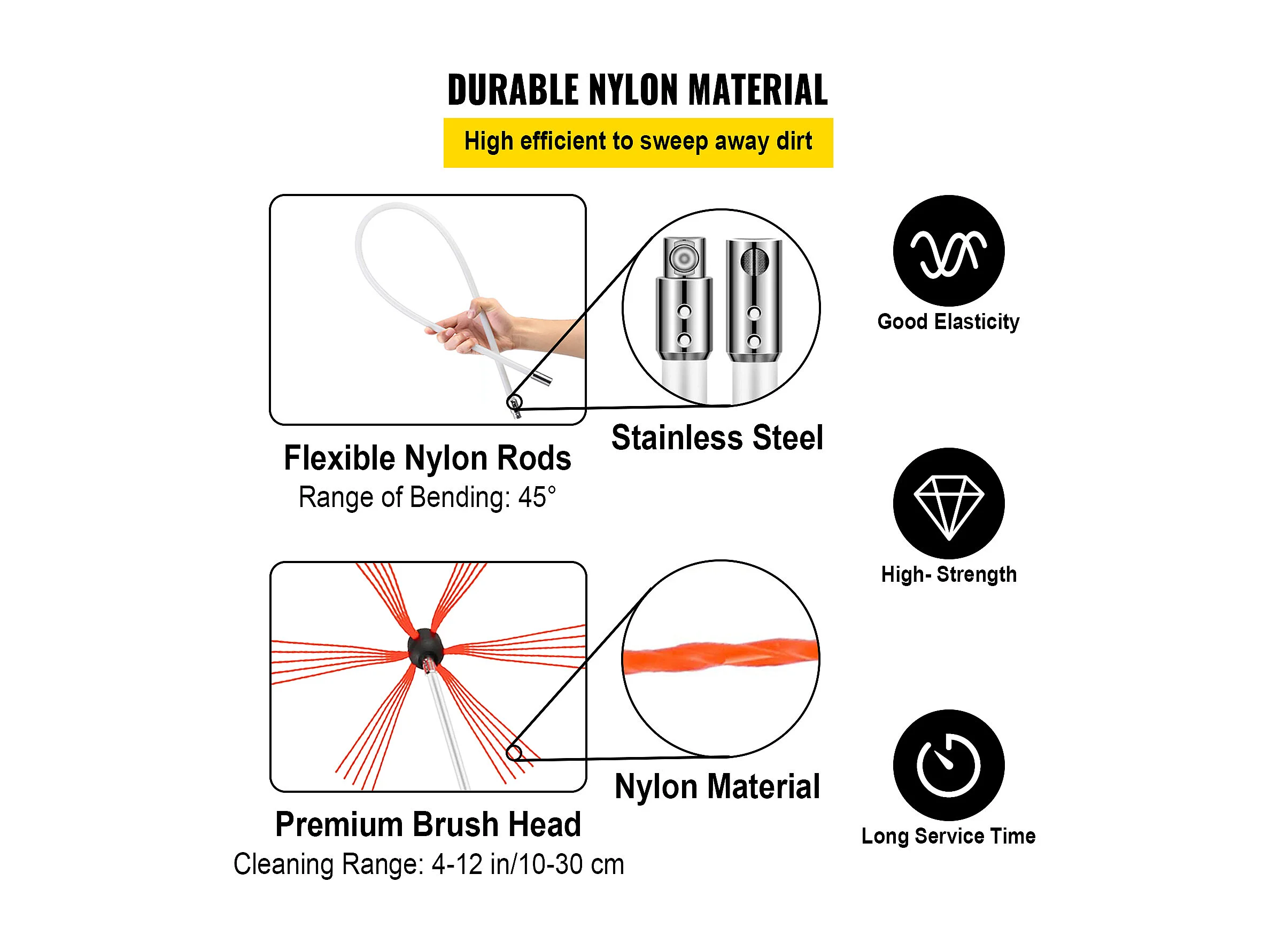 Brosse de Cheminée Kit SucceBuy, 66 cm, Brosse Rotative avec 8 Tiges en Nylon, Convient aux Tuyaux