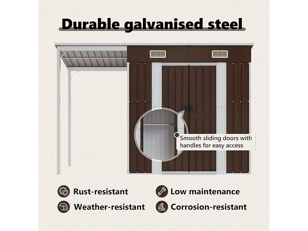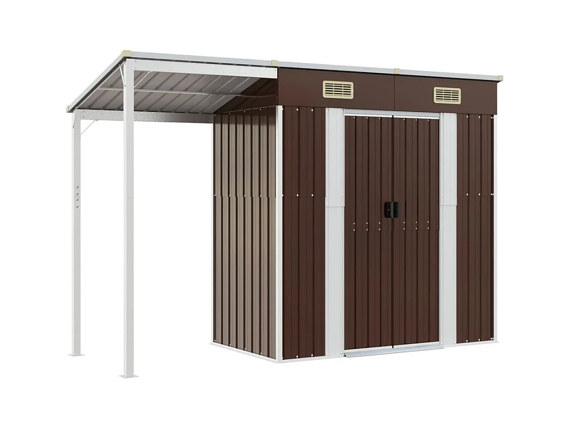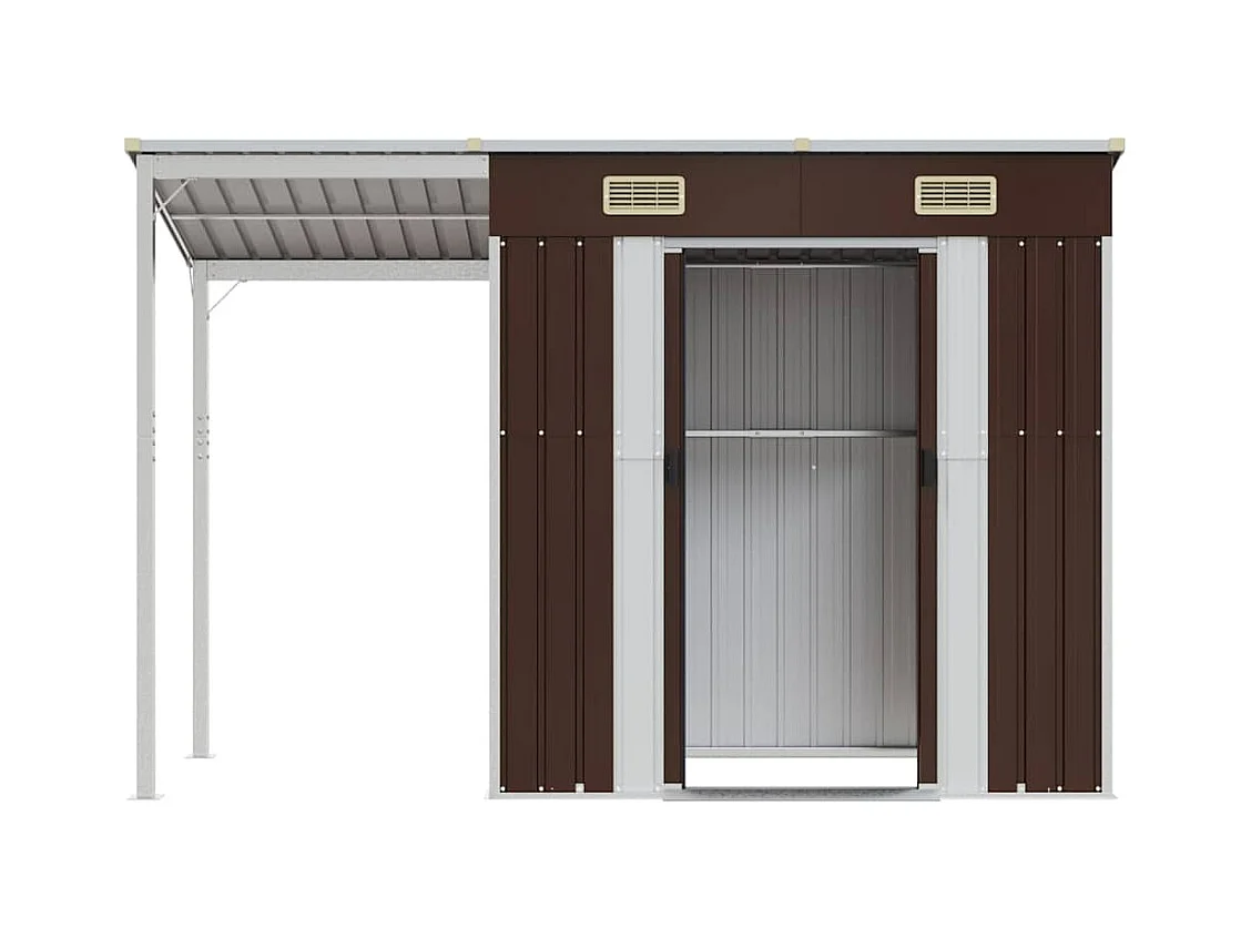 Klavs Abri de jardin avec toit prolongé marron 277x107x181 cm acier