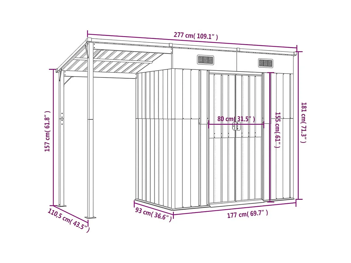 Lakeville Abri de jardin anthracite 277x279x179 cm acier galvanisé