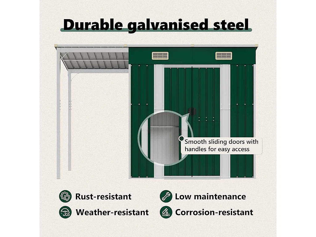 Klavs Abri de jardin avec toit prolongé vert 277x107x181 cm acier