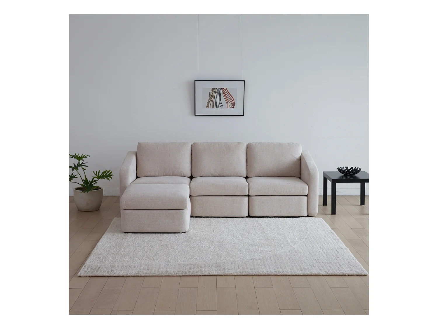Canapé modulable 3 places bouclette beige avec pouf MODULAR