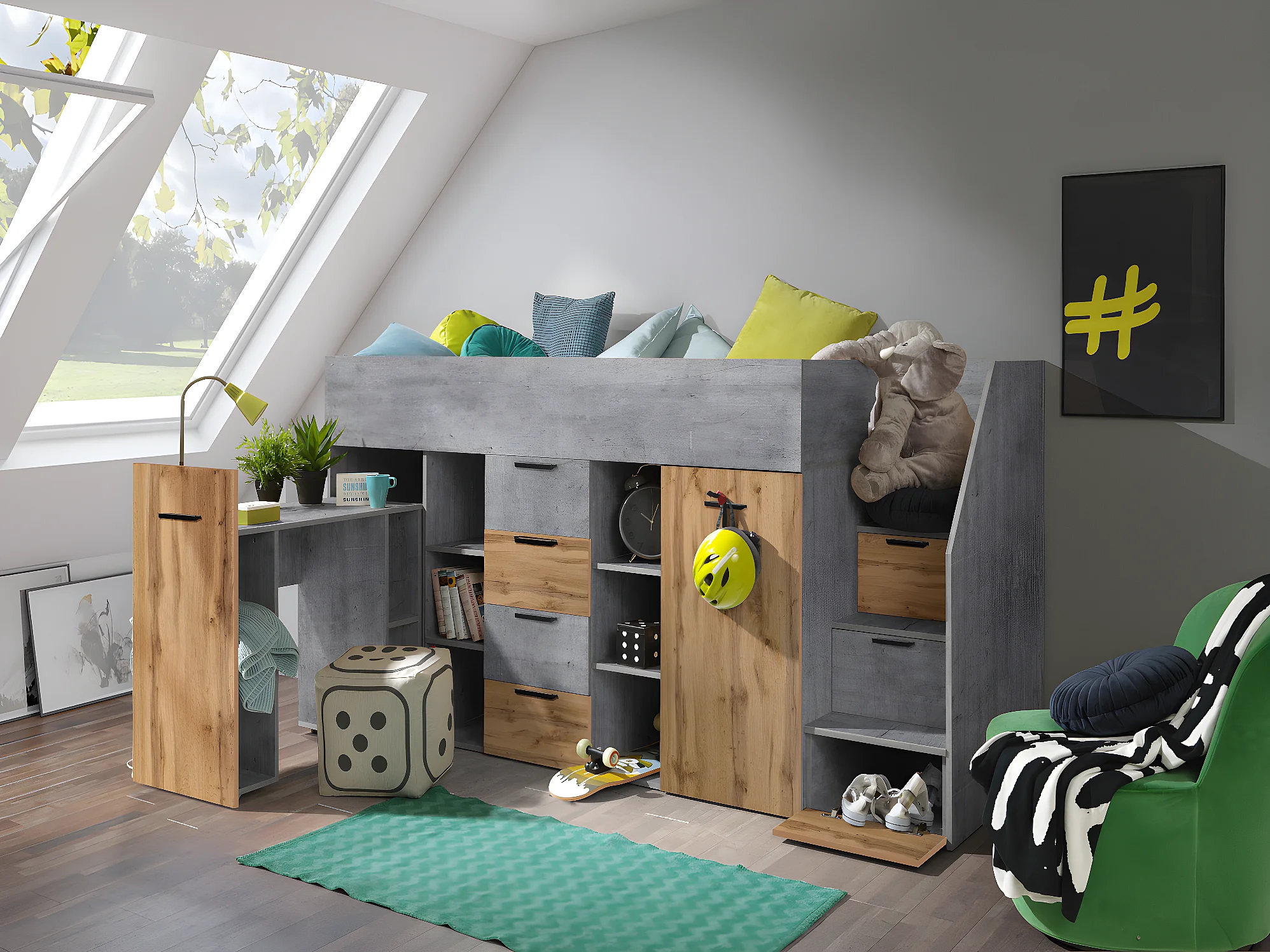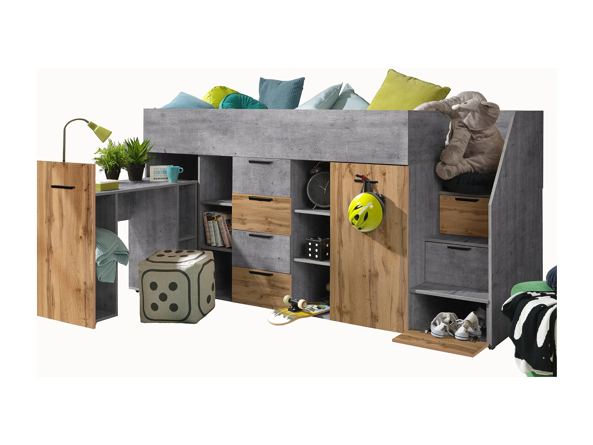 KONKRET 3P Lit superposé 248,5/123/93 (béton/wotan)