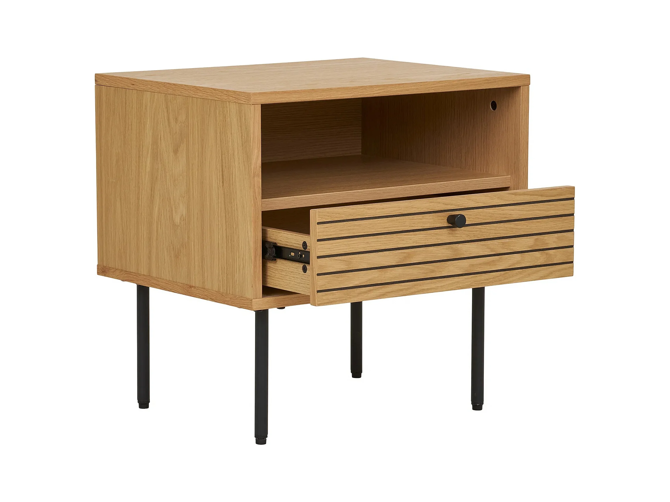 Table d'appoint 1 tiroir KYOTO – Chêne & métal noir-Marron