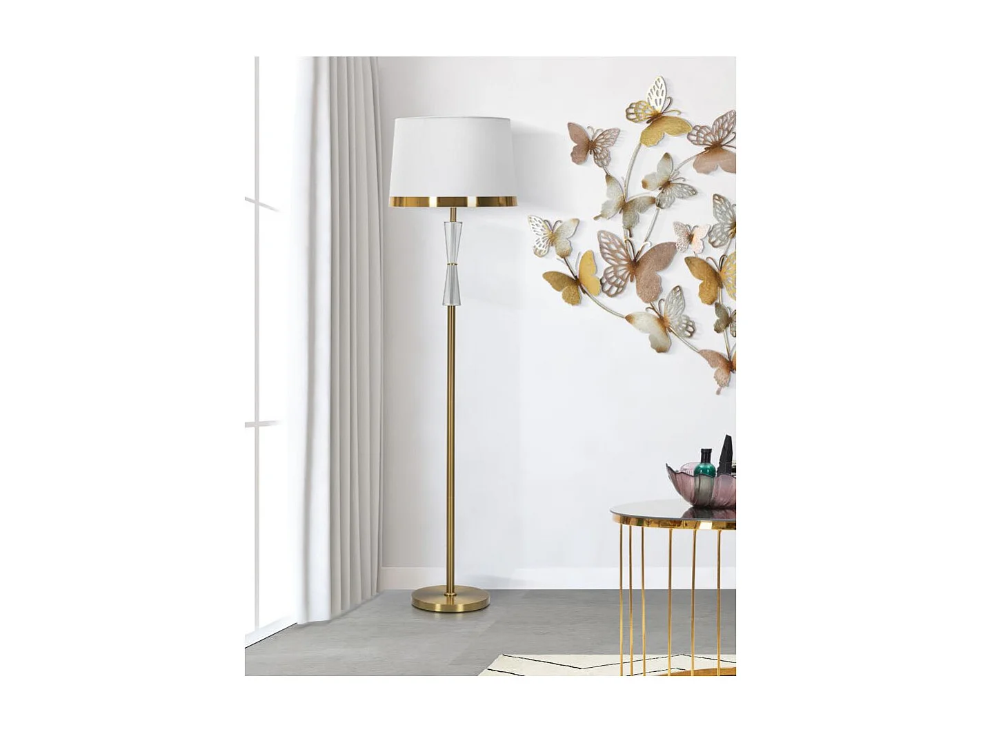 Lampadaire en Verre "Cristal" 153cm Blanc & Or