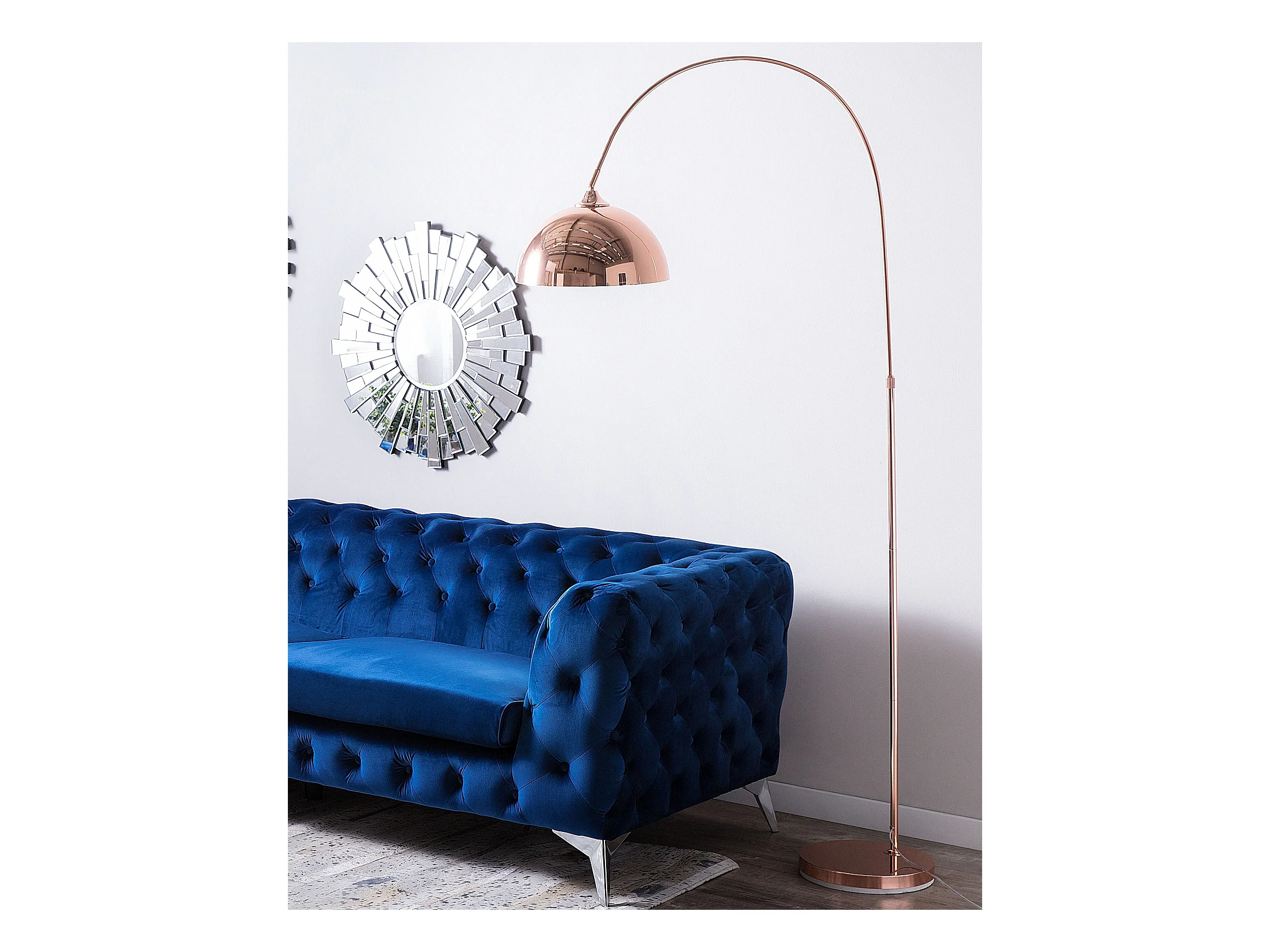 Lampadaire Arquer arc lampe de salon abat-jour rose doré pied marbre noir