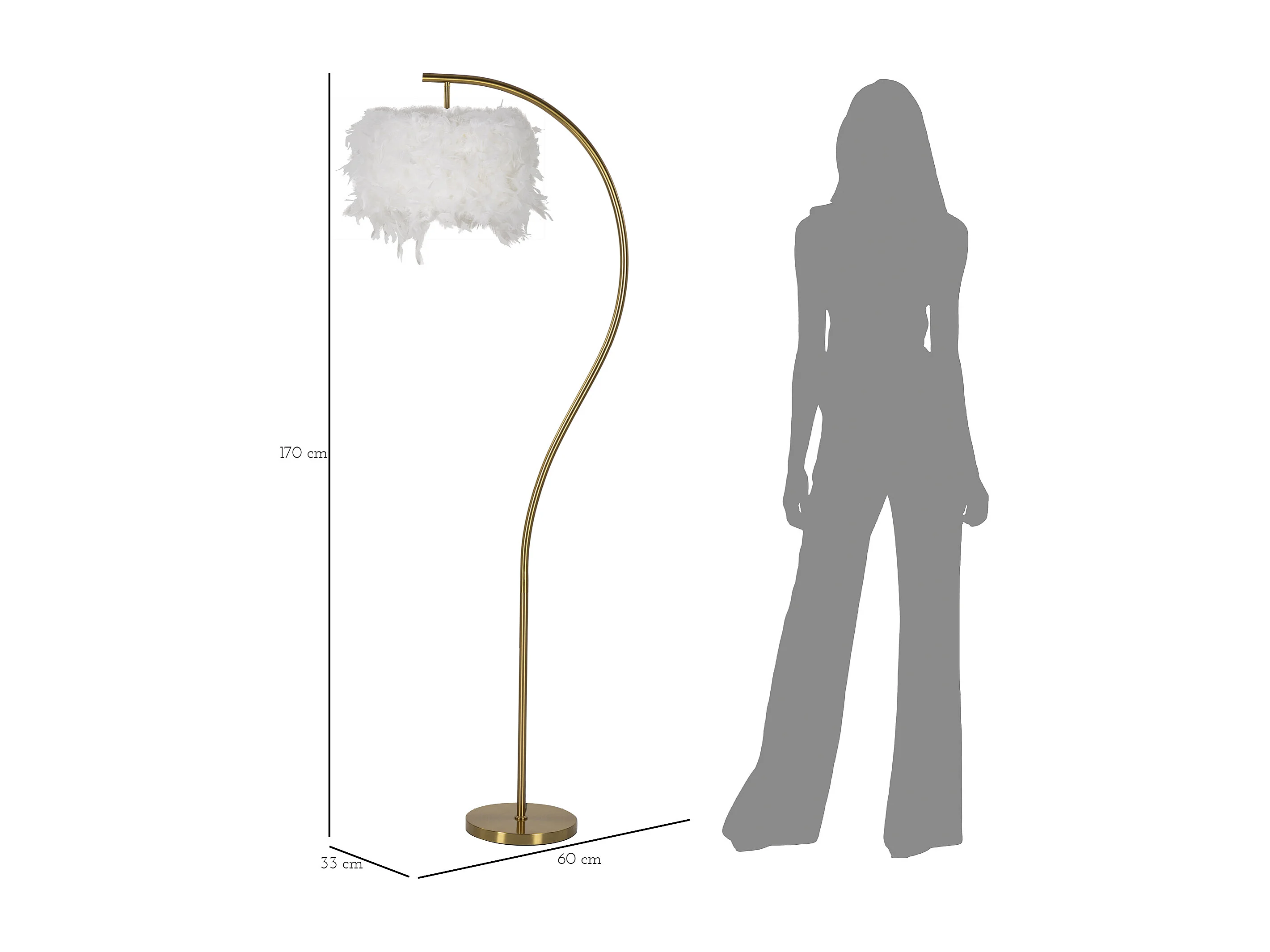 Lampadaire Imitation Plume "Semi Arc" 170cm Or & Blanc