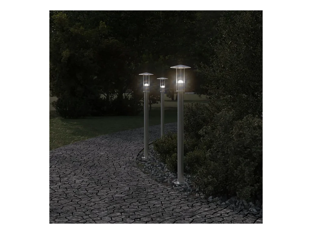 Lampadaires d'extérieur 3 pcs argenté 100 cm acier inoxydable FR833332