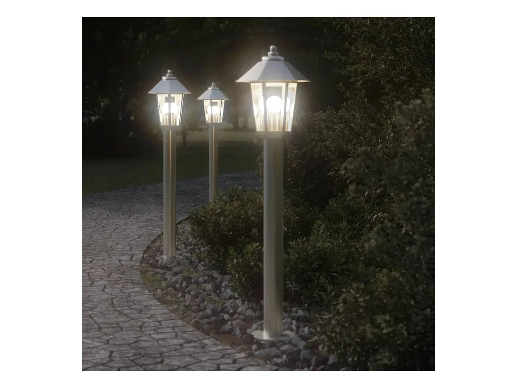 Lampadaires d'extérieur 3 pcs argenté 100 cm acier inoxydable FR833332