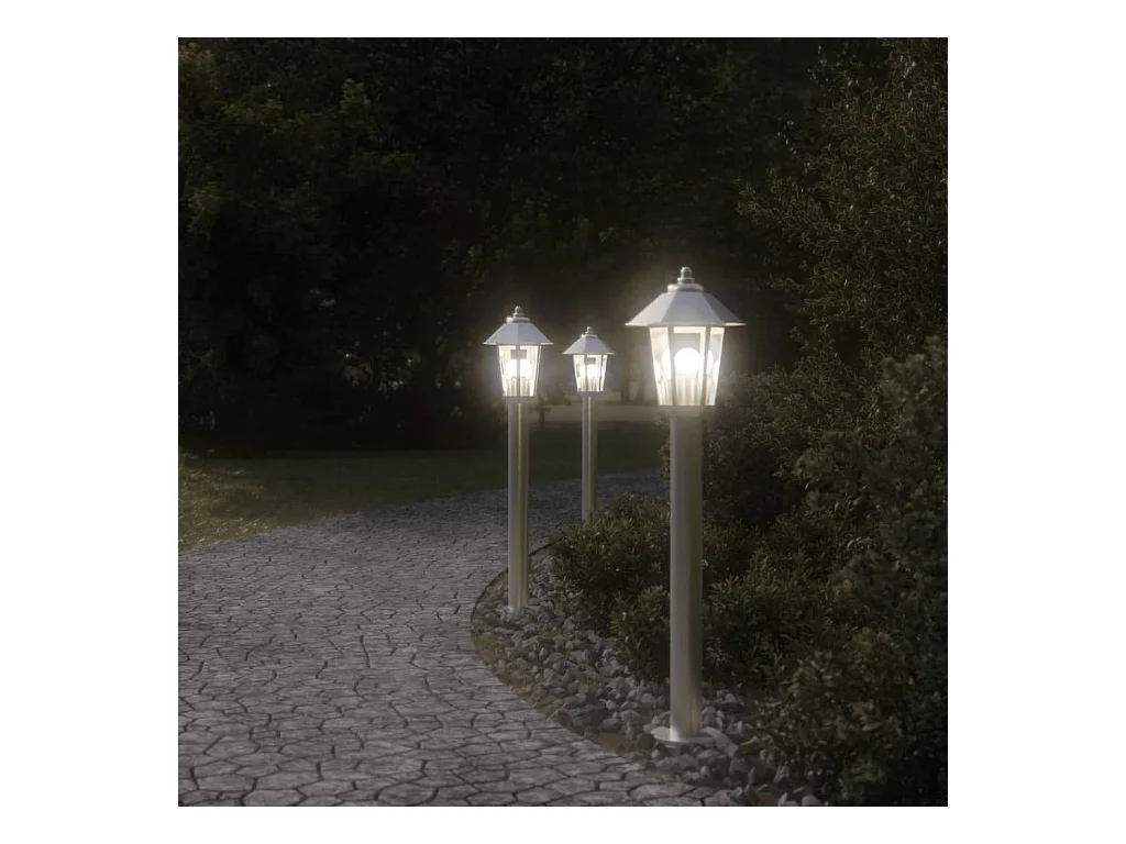 Lampadaires d'extérieur 3 pcs argenté 120 cm acier inoxydable FR176312