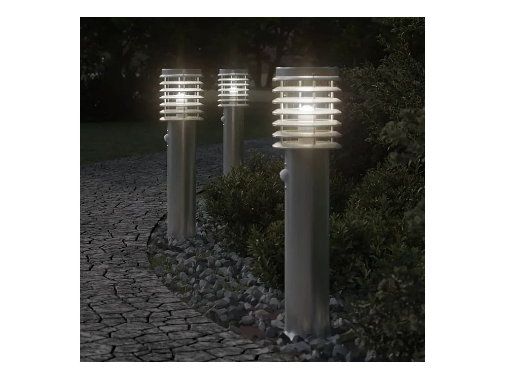 Lampadaires d'extérieur avec capteurs 3 pcs acier inoxydable FR849028