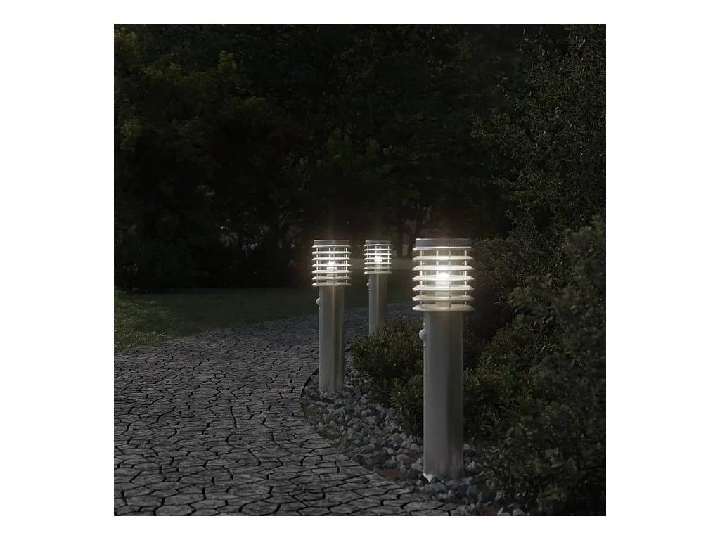 Lampadaires d'extérieur 3 pcs argenté 110 cm acier inoxydable FR116880