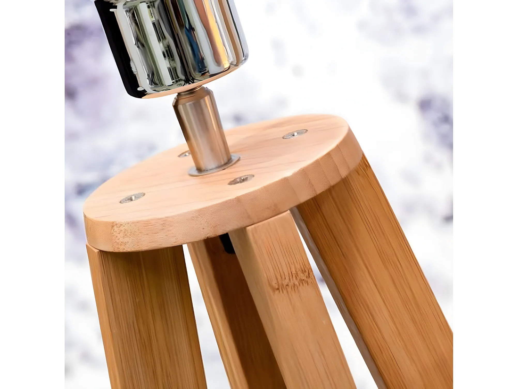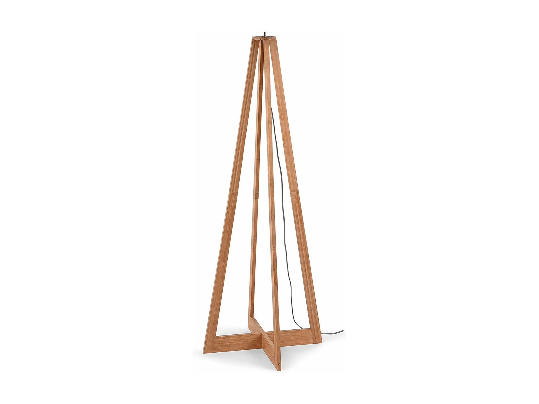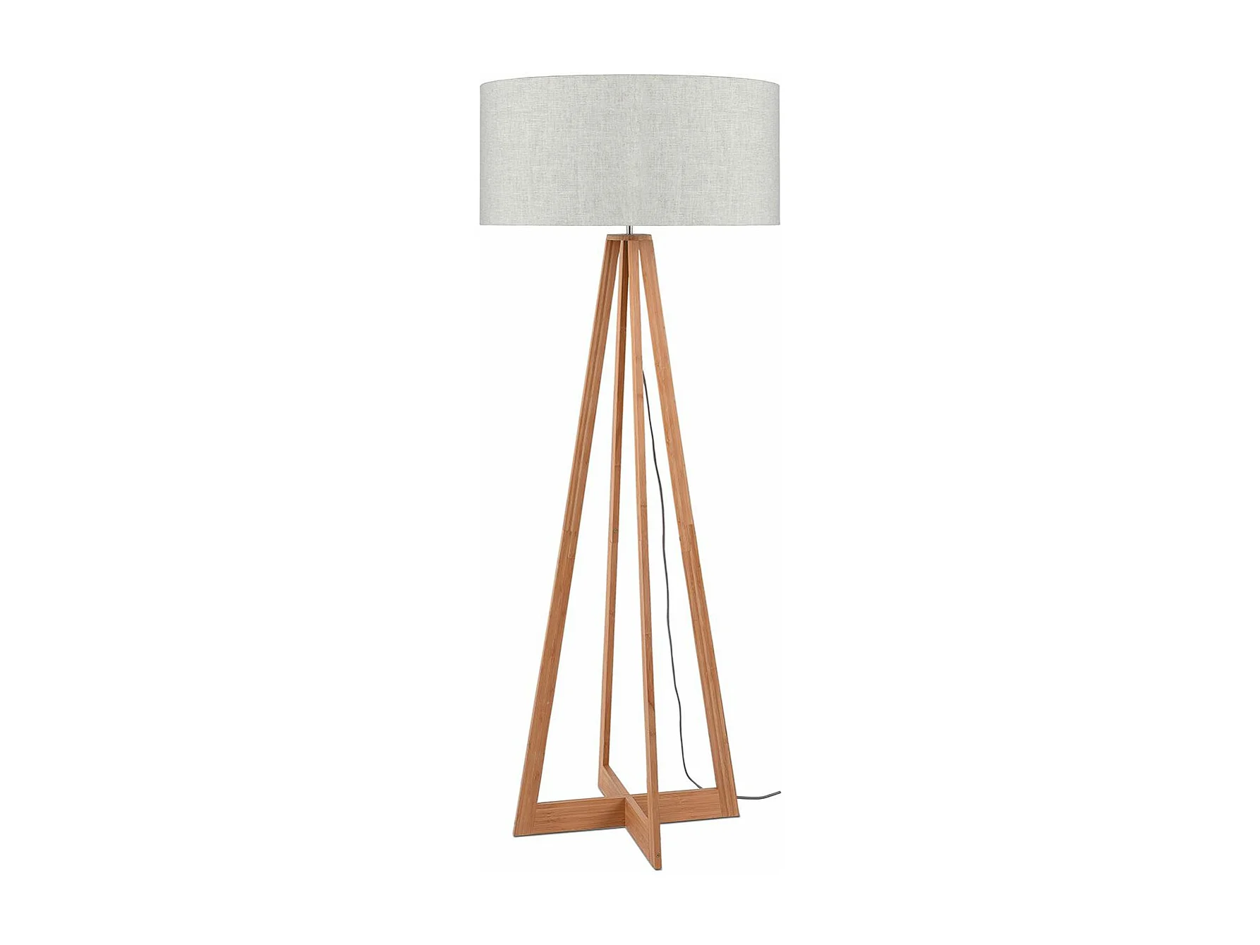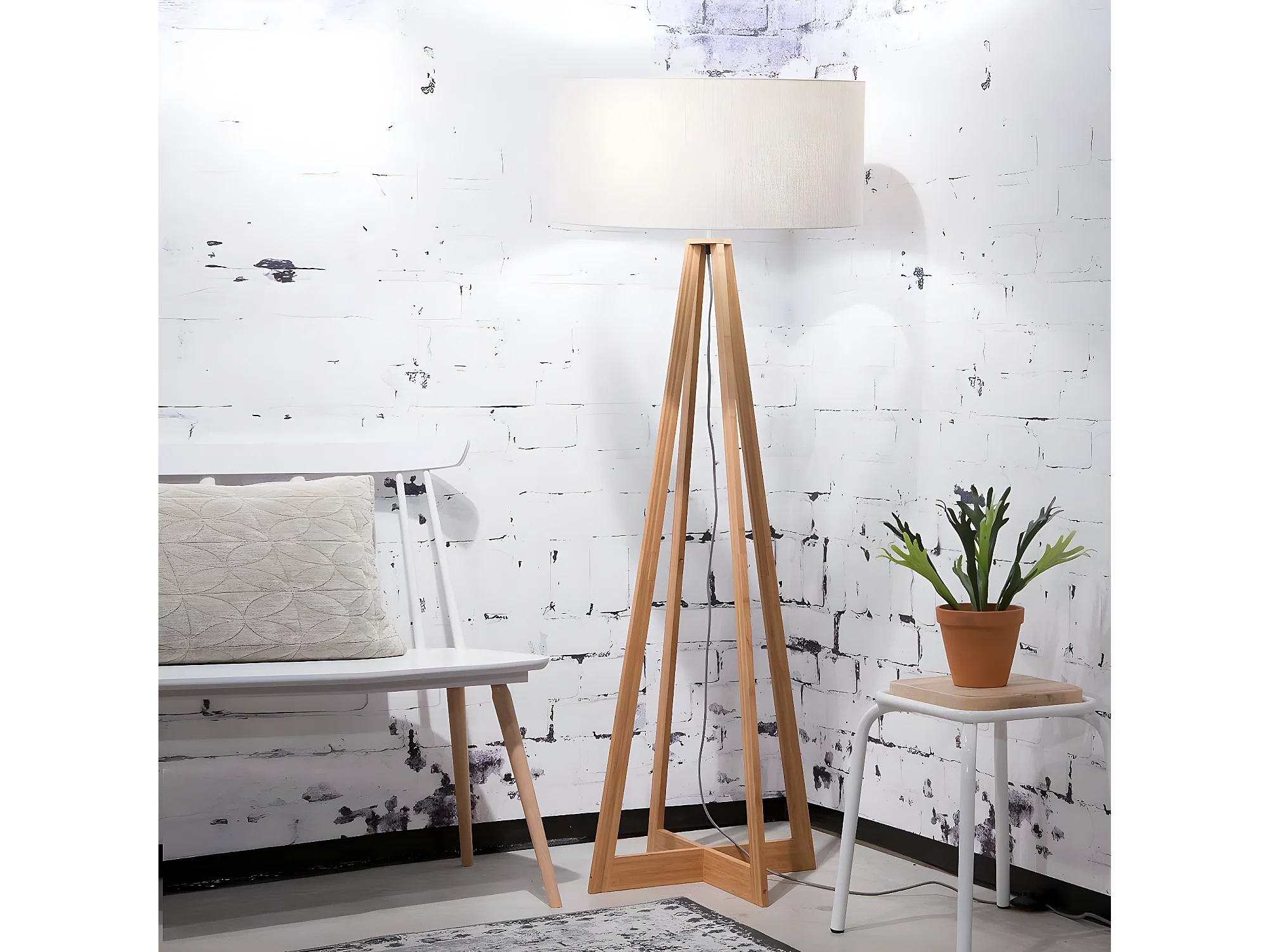 Lampadaire en bambou marron avec abat-jour en tissu lin clair