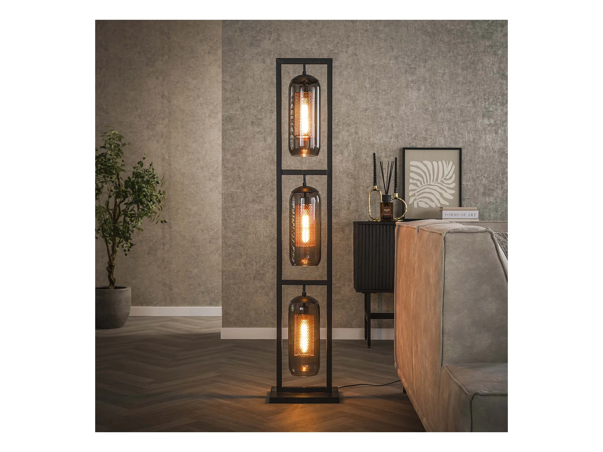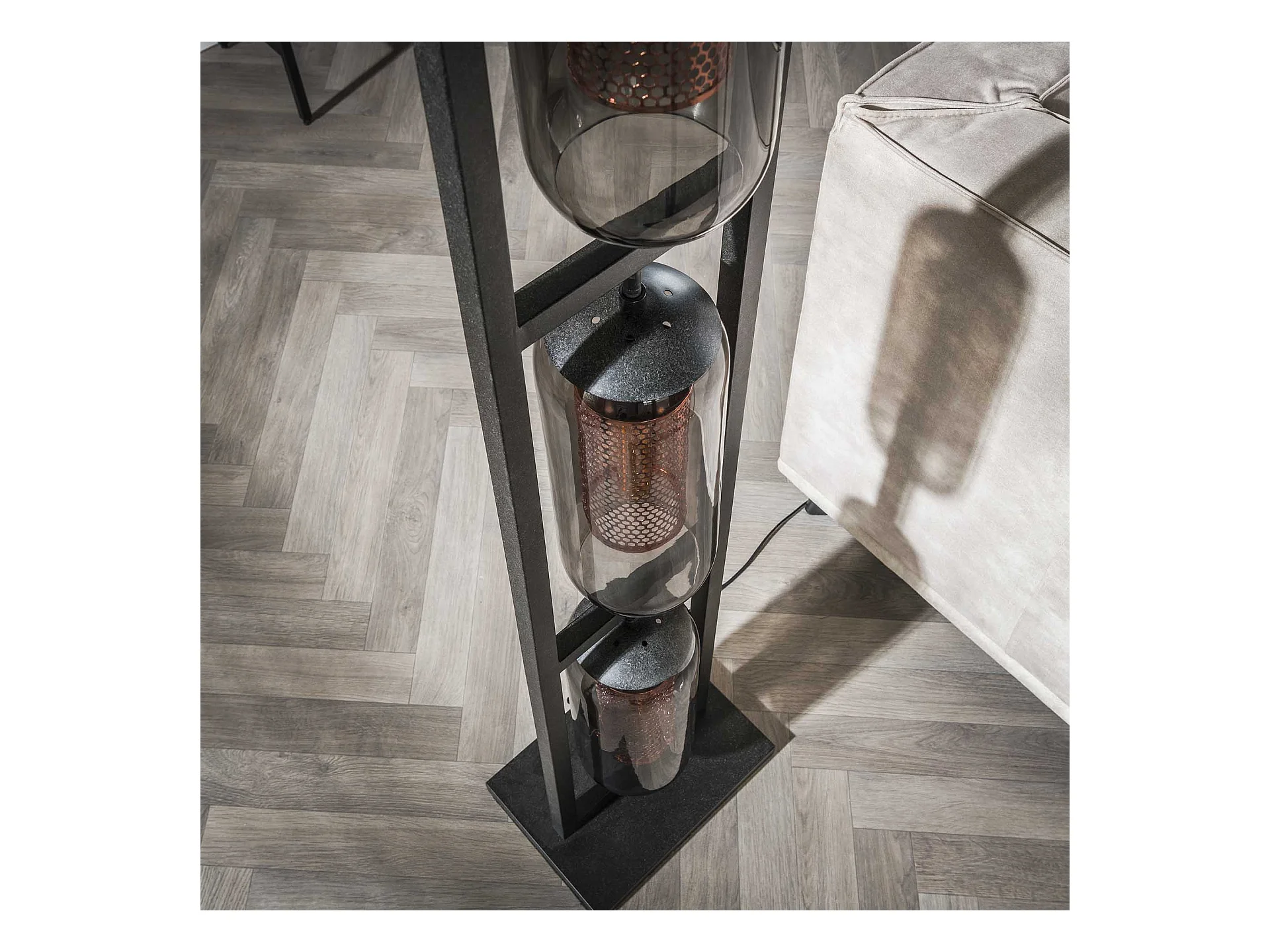 Lampadaire Tower 3L - Verre fumé - Noir arctique