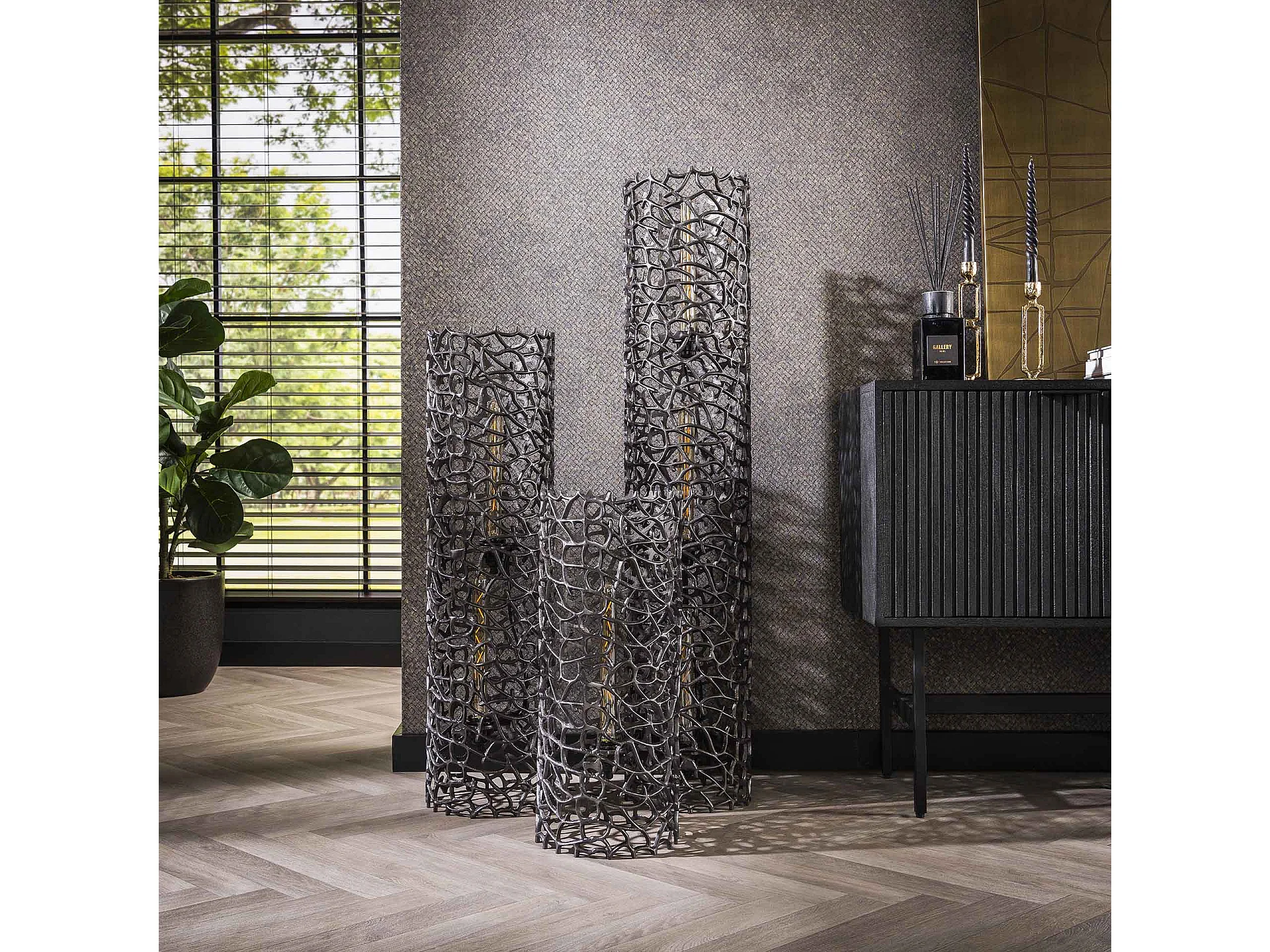 Lampadaire Organic Ø25 Cylindre XL 4L - Nickel Noir